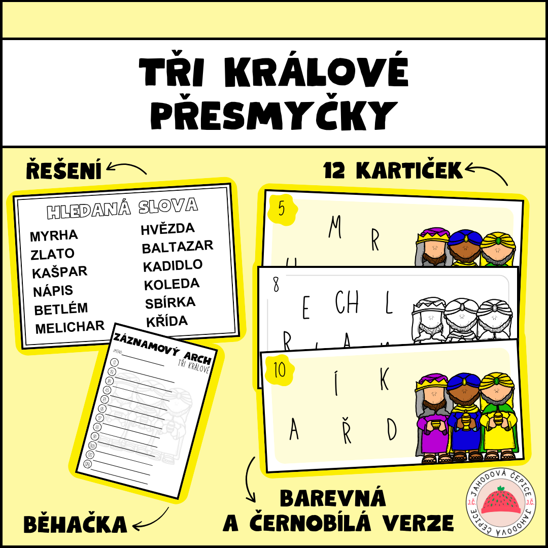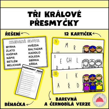 Tato zábavná hra je ideální pro žáky, kteří si chtějí otestovat své dovednosti při luštění přesmyček. Žáci si procvičí svou slovní zásobu a kreativitu při luštění přesmyček spojených s tematikou Tři králové.