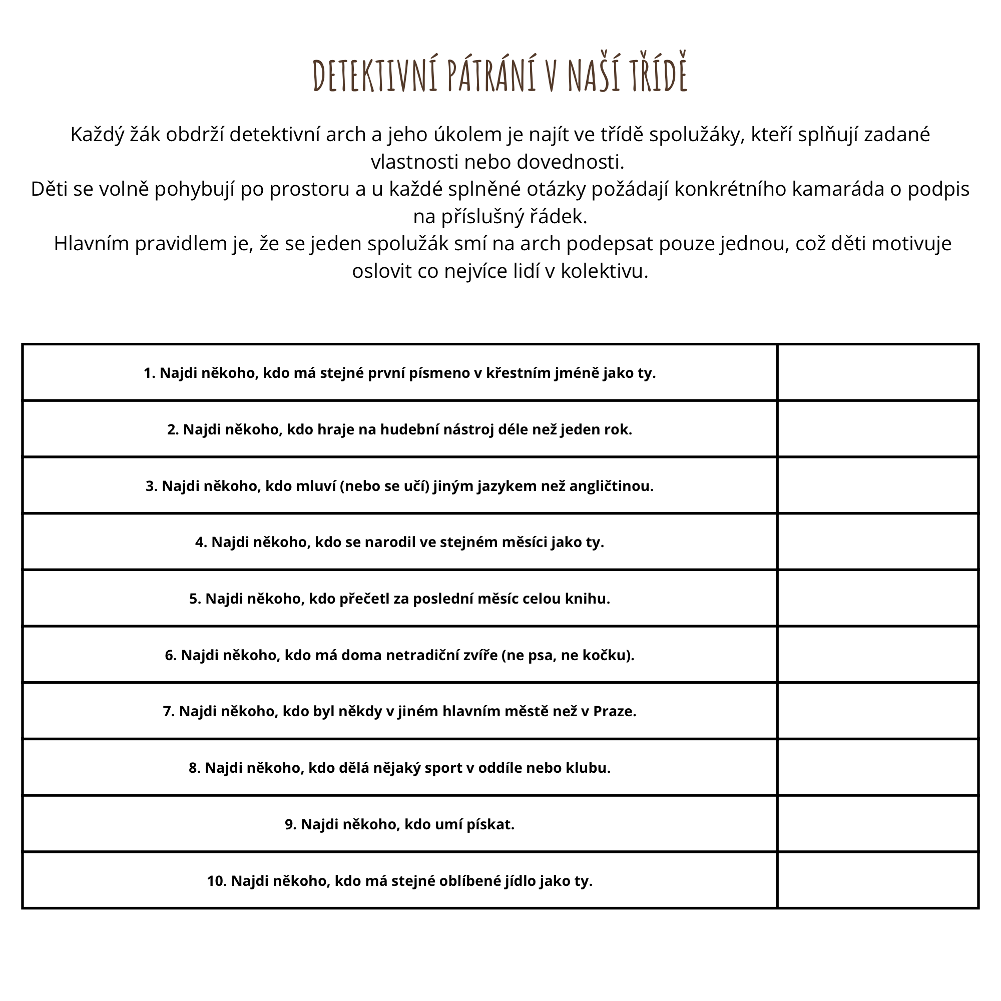 MISE: TŘÍDNÍ DETEKTIV – Velká seznamovací a stmelovací hra 🕵🏻♀️