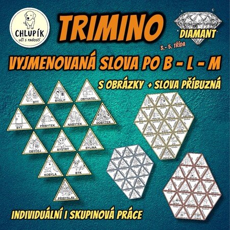 – 3 sady Trimino „Diamant“ (vyjmenovaná slova po B, po L a po M),