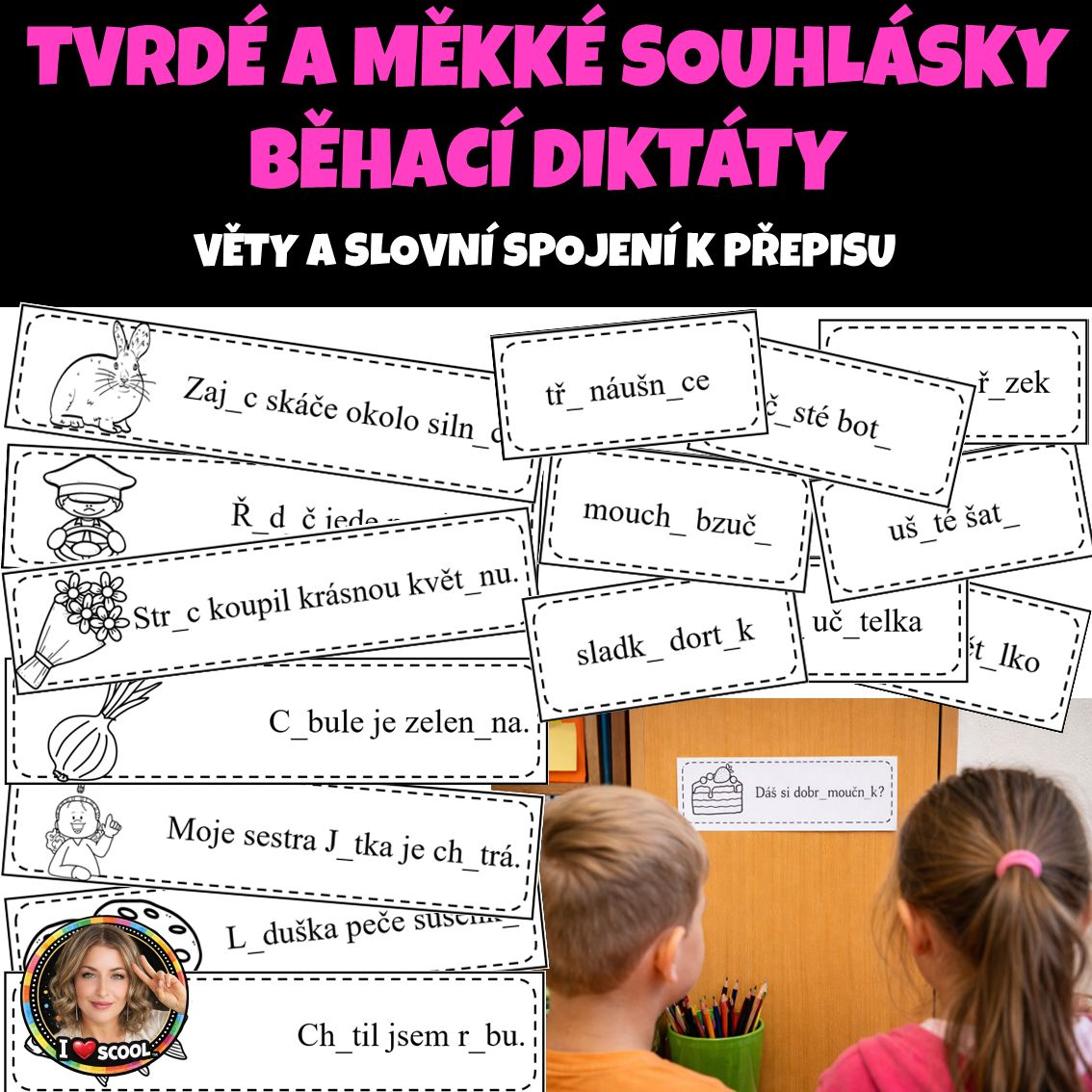 Materiál slouží k aktivnímu procvičování psaní i, í / y, ý po měkkých a tvrdých souhláskách. Je koncipován jako pohybová (běhací) aktivita, která propojuje upevňování pravopisných dovedností s přirozenou potřebou pohybu. Úkoly jsou připraveny tak, aby vedly děti k samostatnému čtení, zapamatování a správnému přepisu textu.