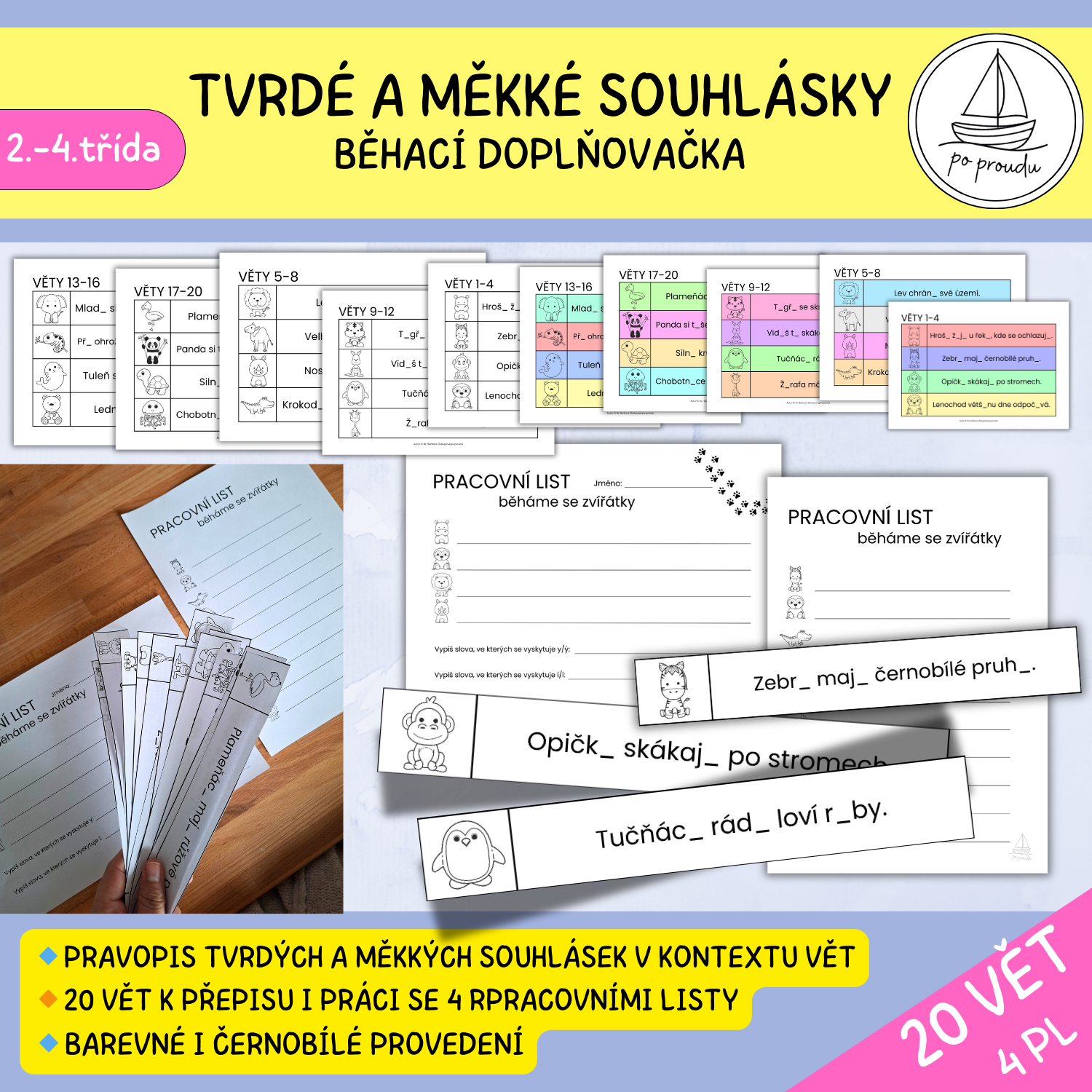 Procvičte pravopis tvrdých a měkkých souhlásek formou běhací doplňovačky. Žáci doplňují chybějící písmena ve 20 větách.