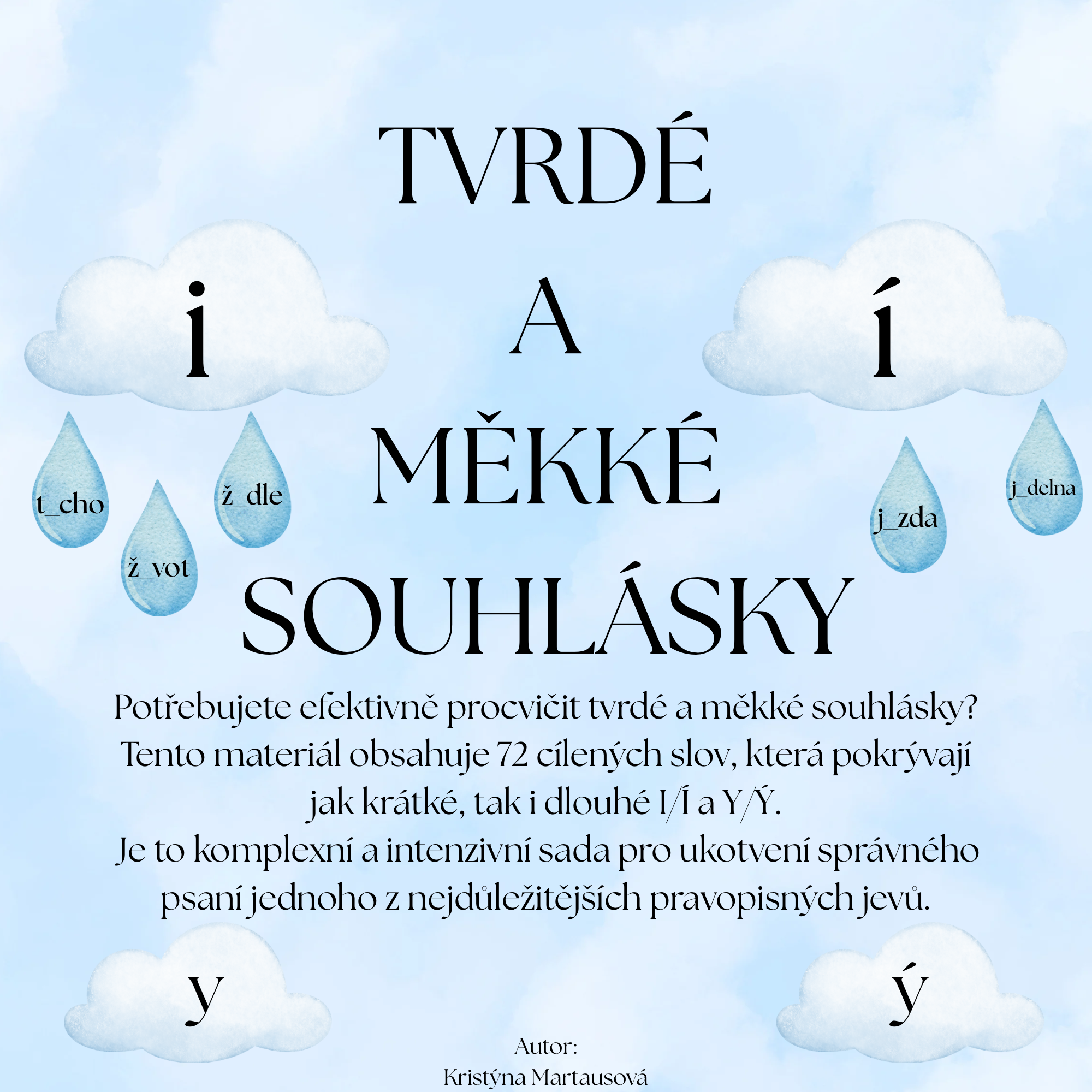 ☁️ TVRDÉ A MĚKKÉ SOUHLÁSKY: Procvičování I/Y 🌧️