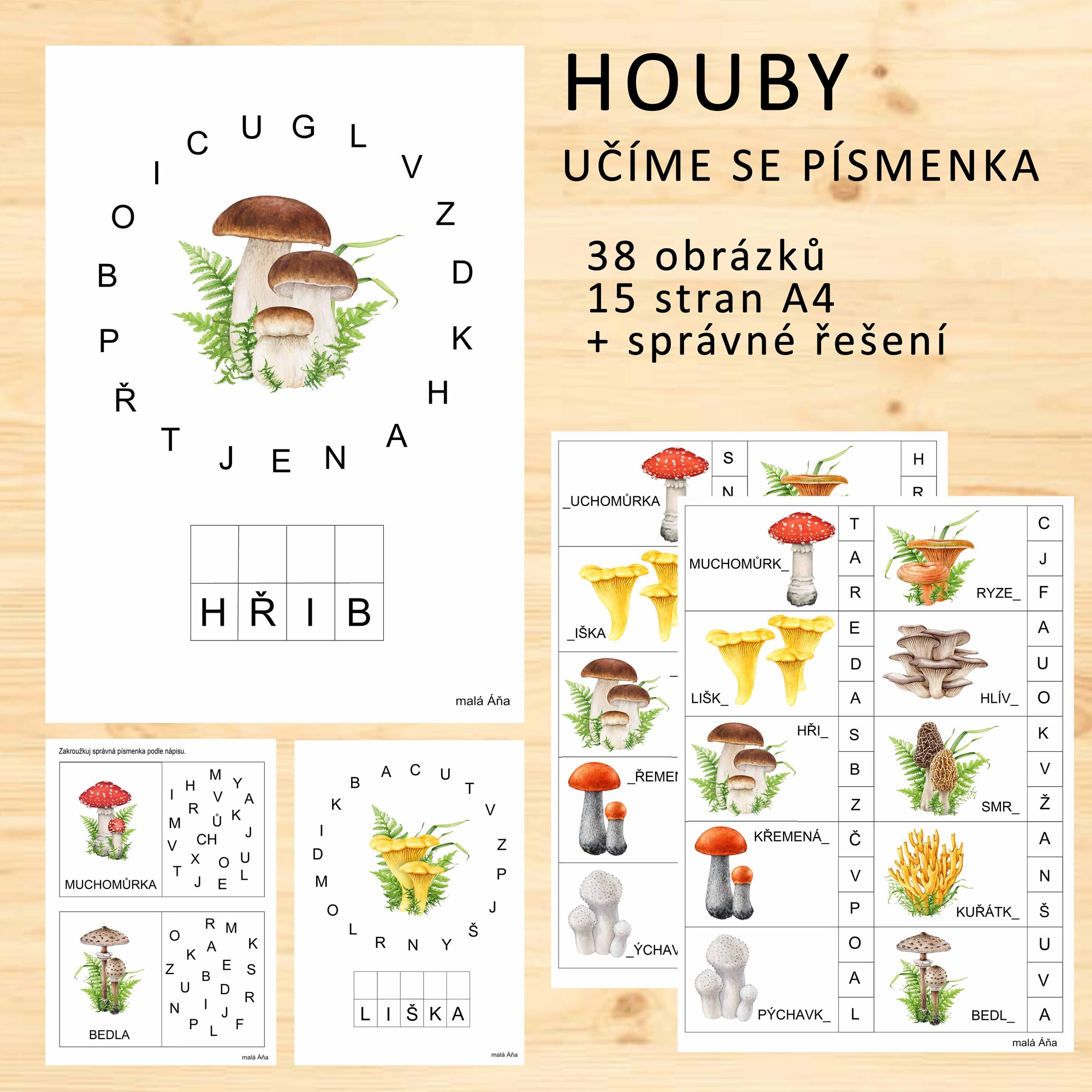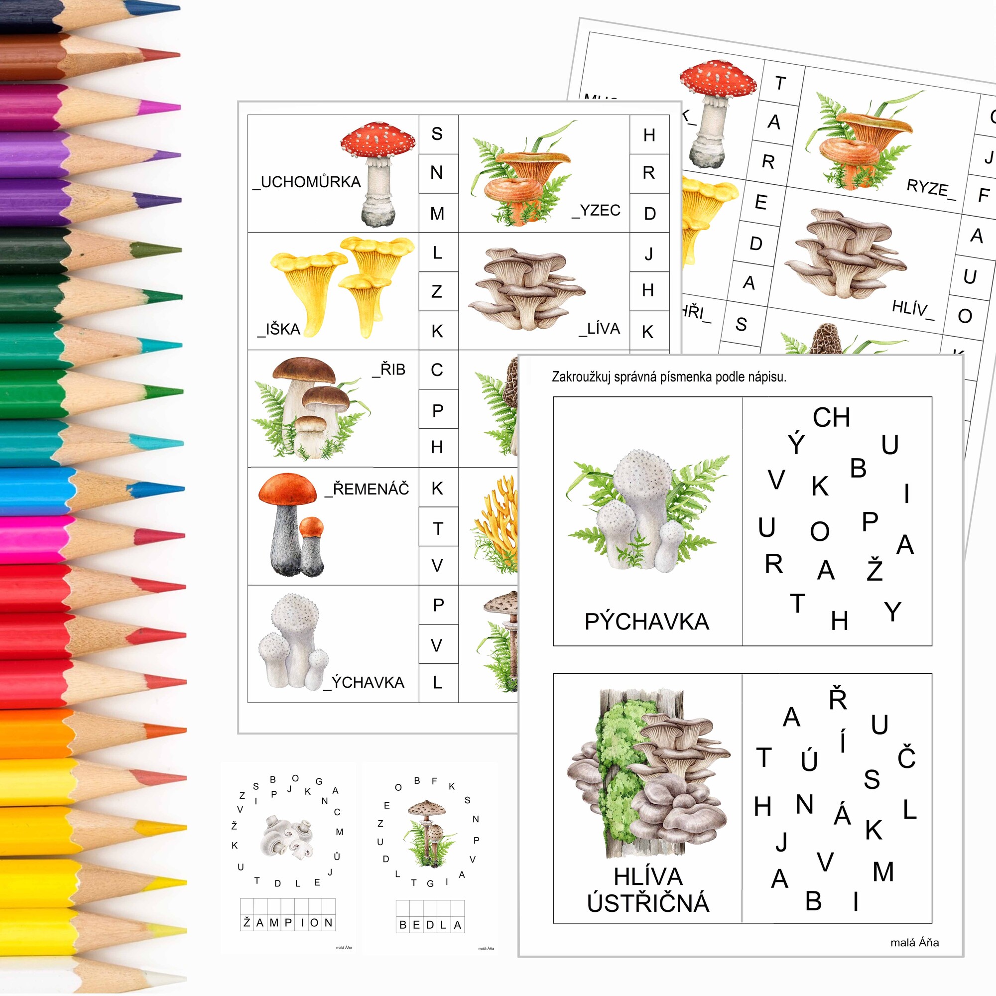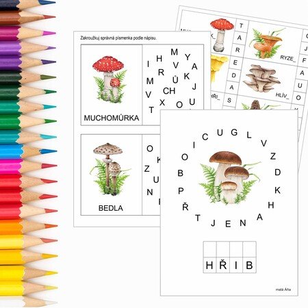 K materiálu doporučujeme vše k tématu HOUBY a další pracovní listy UČÍME SE PÍSMENKA.