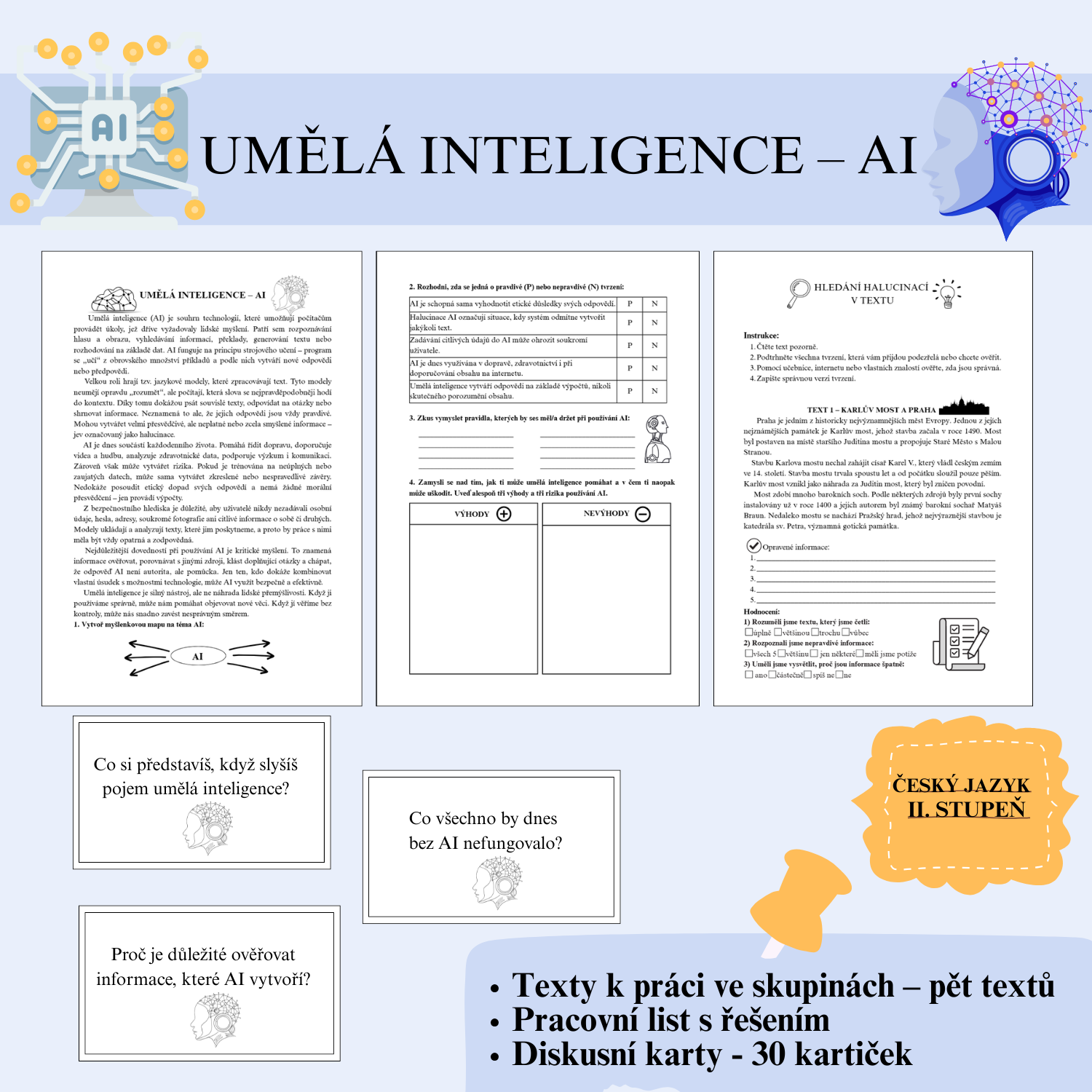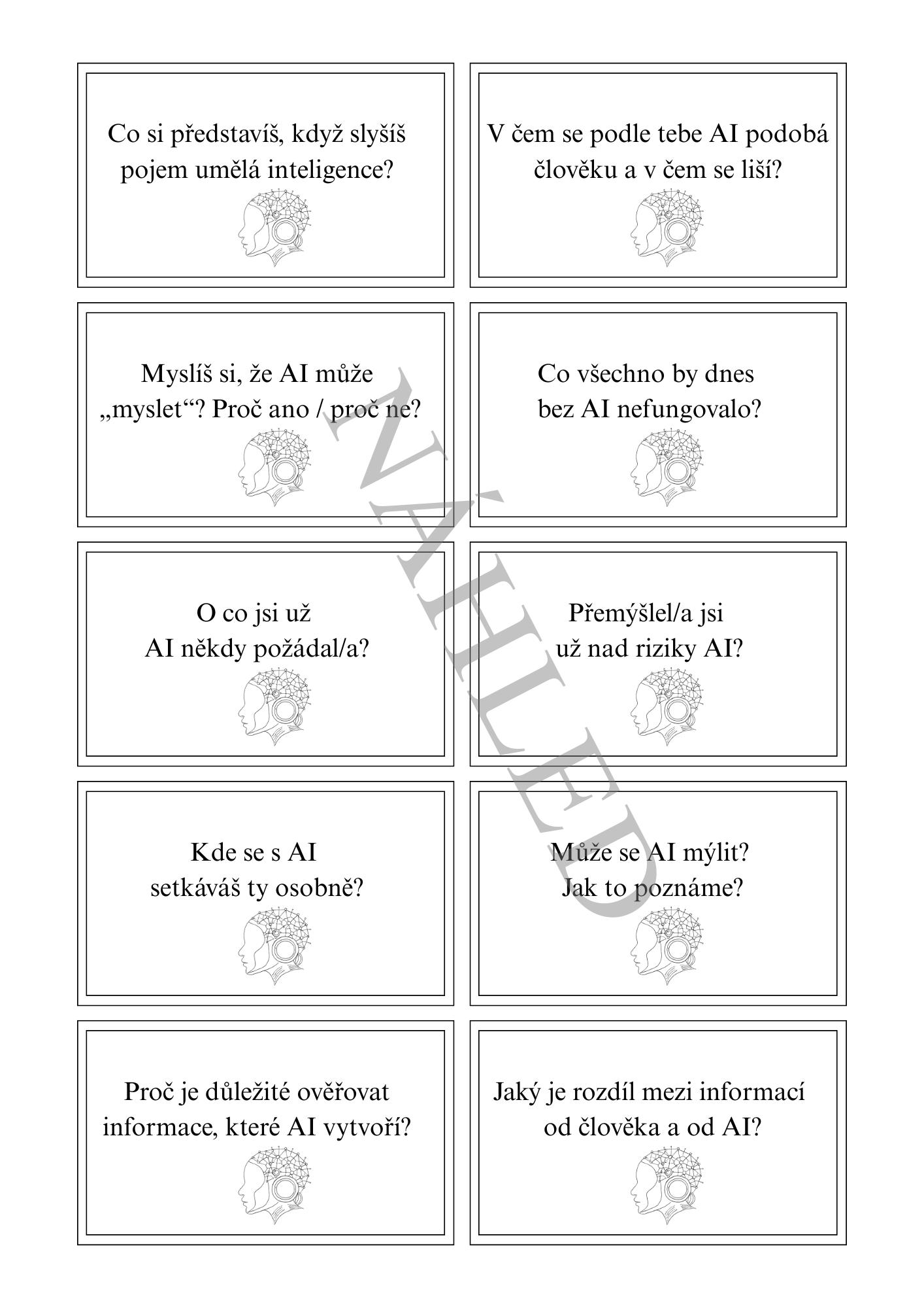 Diskusní karty – sada 30 otázek k tématu umělé inteligence, které podporují přemýšlení, argumentaci a společnou debatu ve třídě.