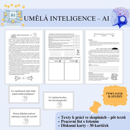 Jedná se o sadu výukových materiálů na téma umělá inteligence, která je určena především pro žáky 2. stupně základních škol. Materiál můžete využít v hodinách informatiky, občanské výchovy, českého jazyka, mediální výchovy nebo při projektových dnech zaměřených na digitální gramotnost.