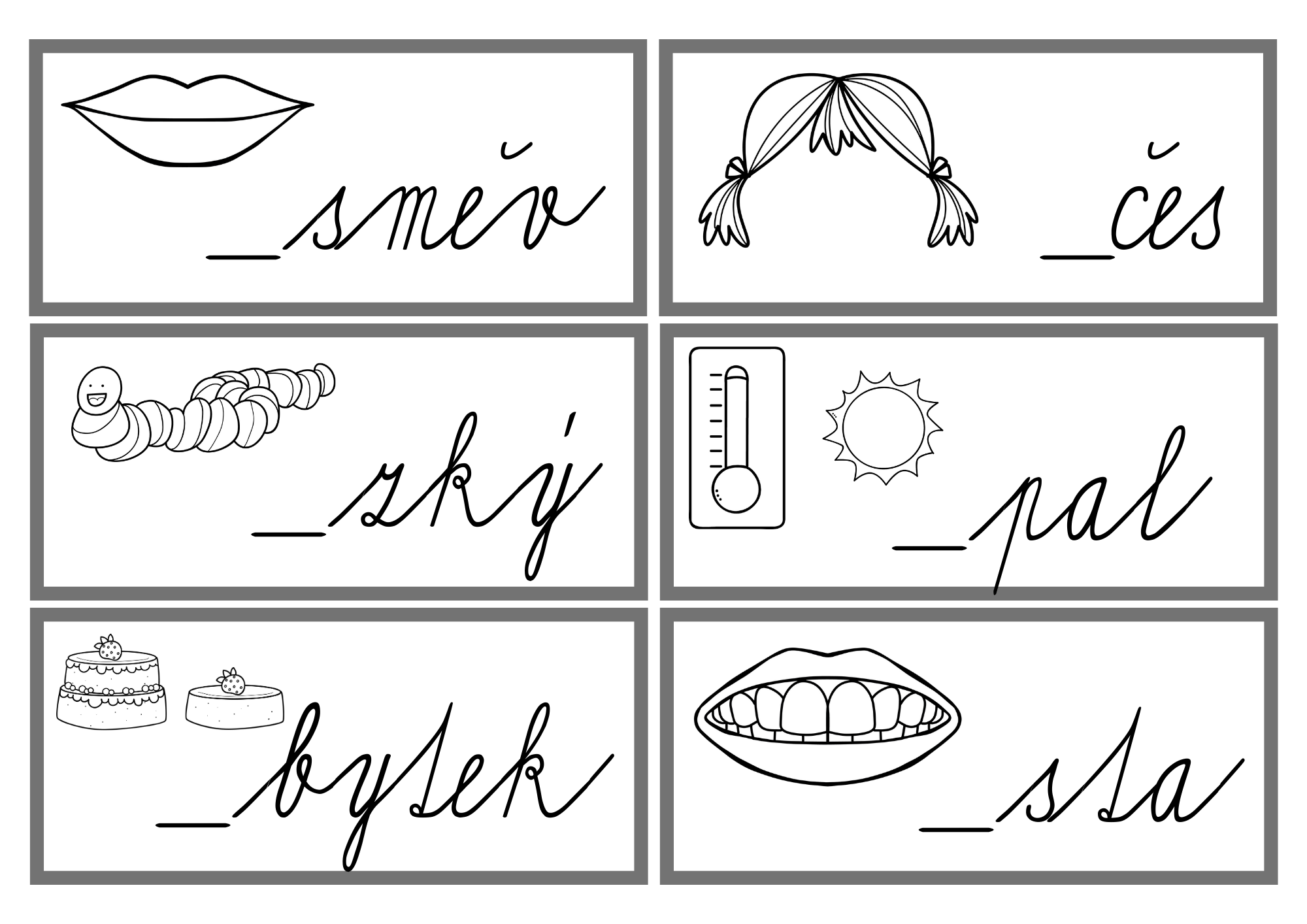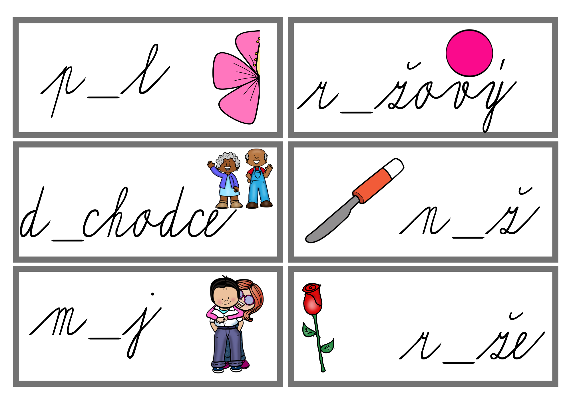 - 12 kartiček na doplnění ú (barevná + černobílá verze)