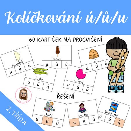 Didaktický materiál zaměřený na procvičování správného psaní ú/u/ů formou oblíbené kolíčkové aktivity. Děti si ke slovu vybírají správné písmeno a označují ho kolíčkem, čímž si upevňují pravopisné dovednosti zábavnou a názornou cestou.