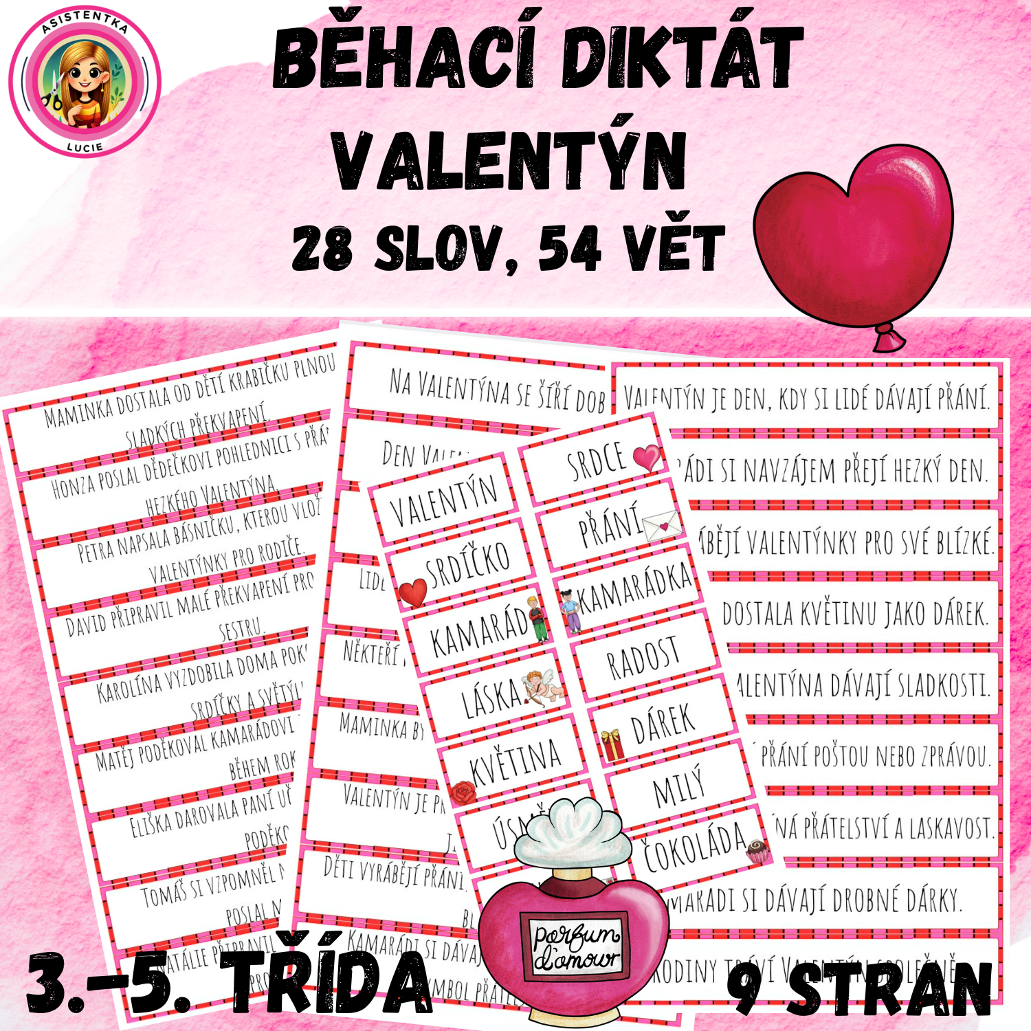Materiál je vhodný jako tematická aktivita k Valentýnu, odlehčené procvičení češtiny nebo jako pohybová aktivita podporující motivaci a spolupráci.