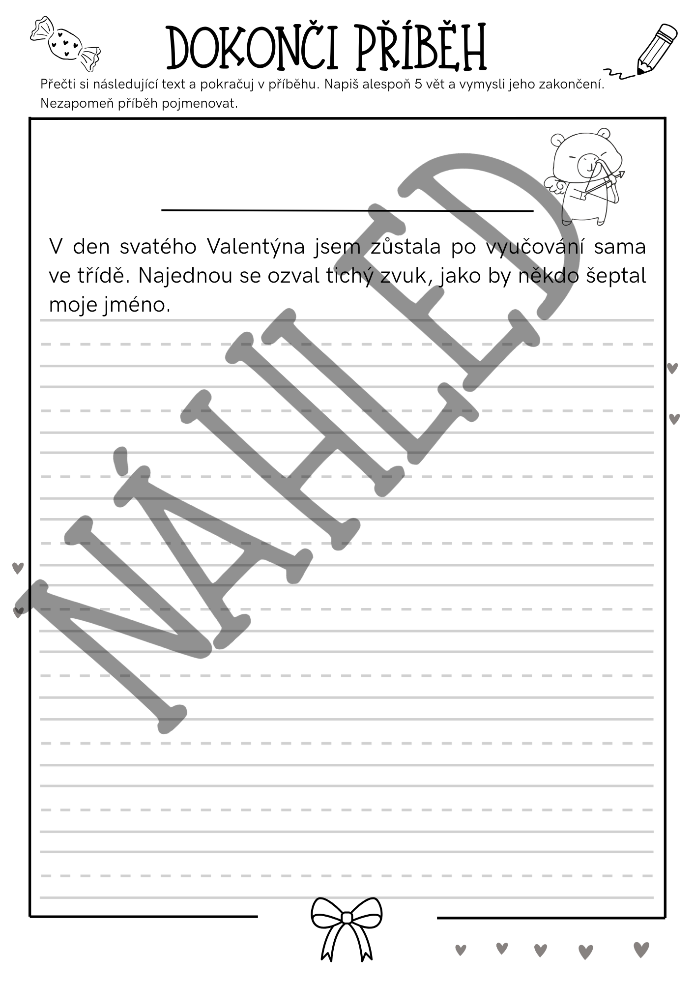 Valentýn nemusí být jen o zamilovaných. Může být o přátelství, laskavosti, tajemství i malých radostech. Tento materiál vede děti k fantazii, vyjadřování emocí a radosti z psaní – přirozeně a hravě.