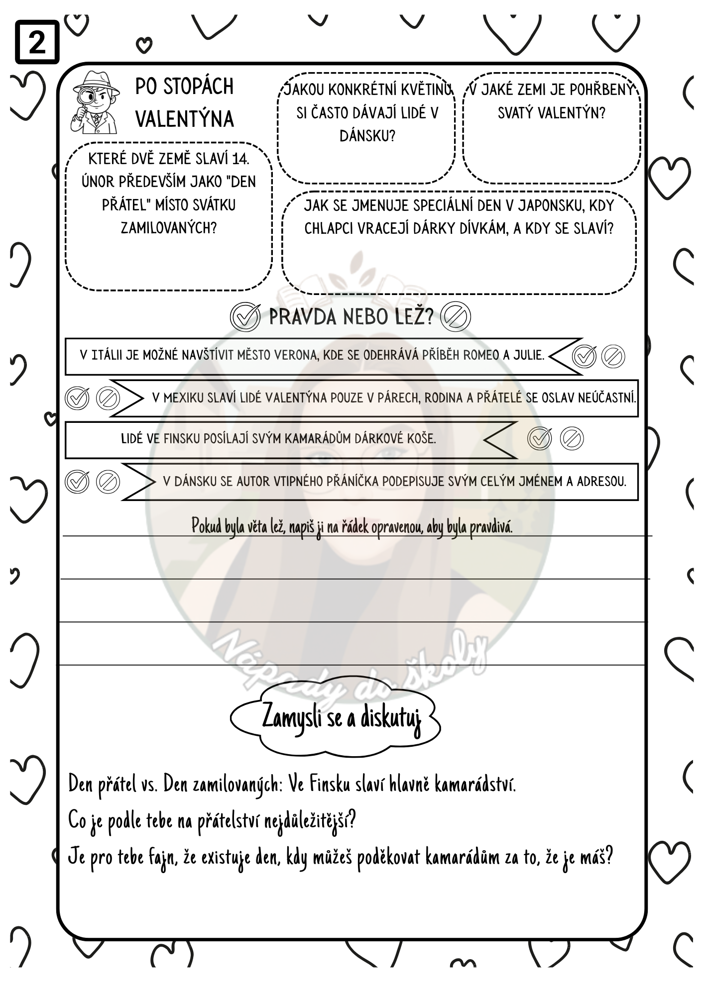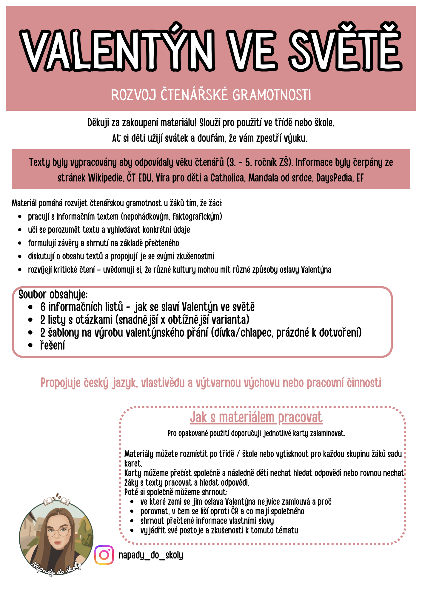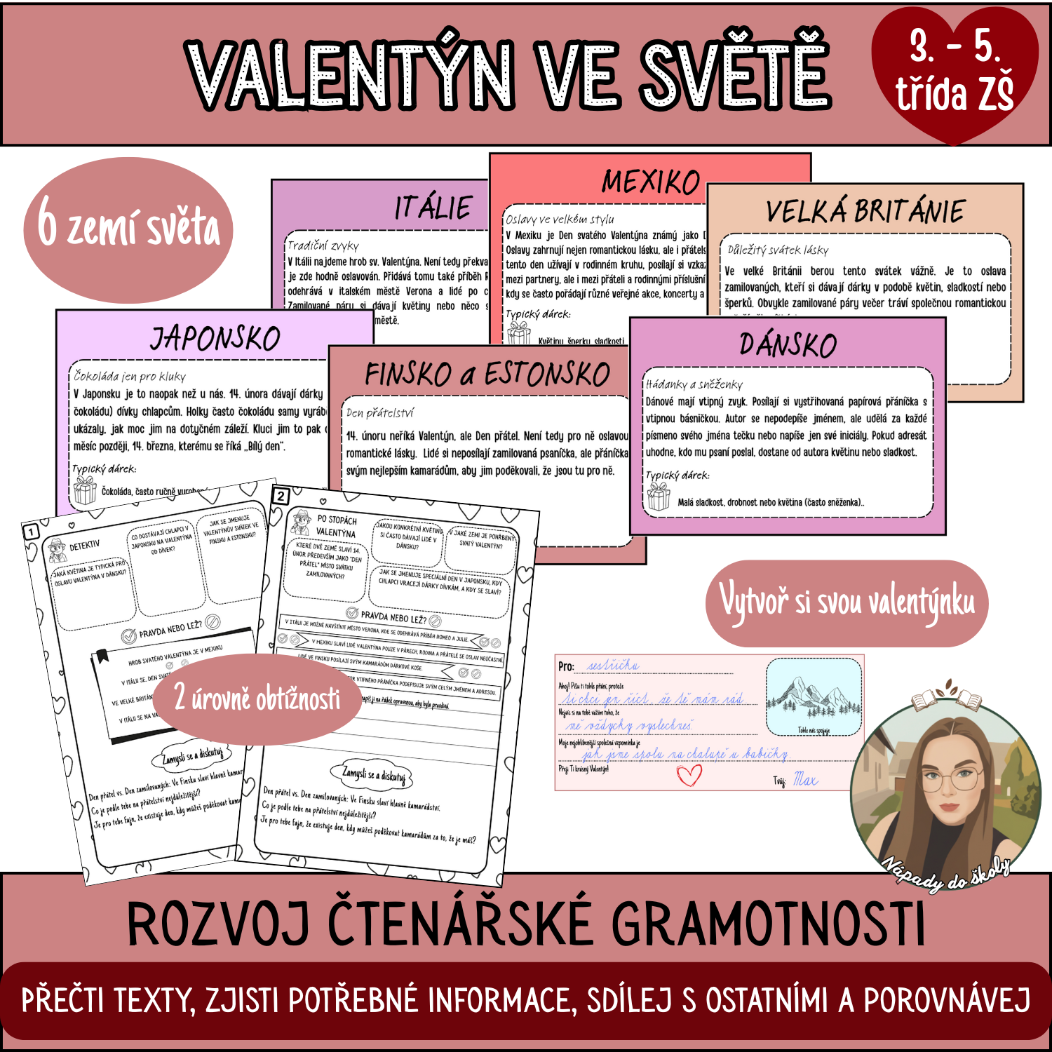 Jak lidé oslavují Valentýn napříč světem? Práce s texty pro rozvoj čtenářské gramotnosti. Žáci vyhledávají informace, ale i srovnávají a sdílí své zkušenosti.