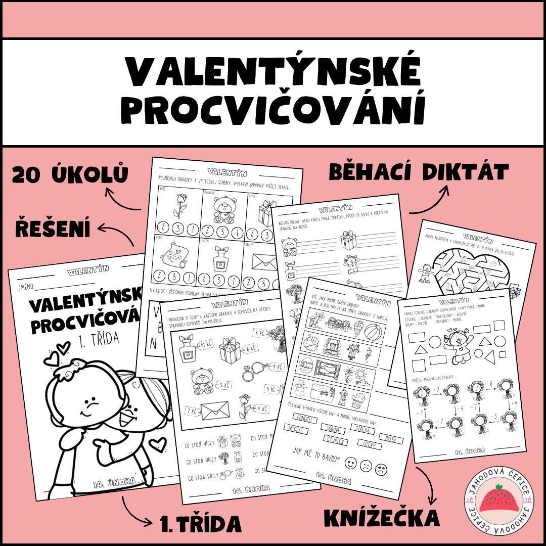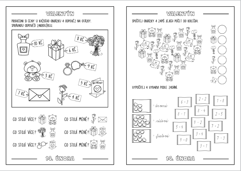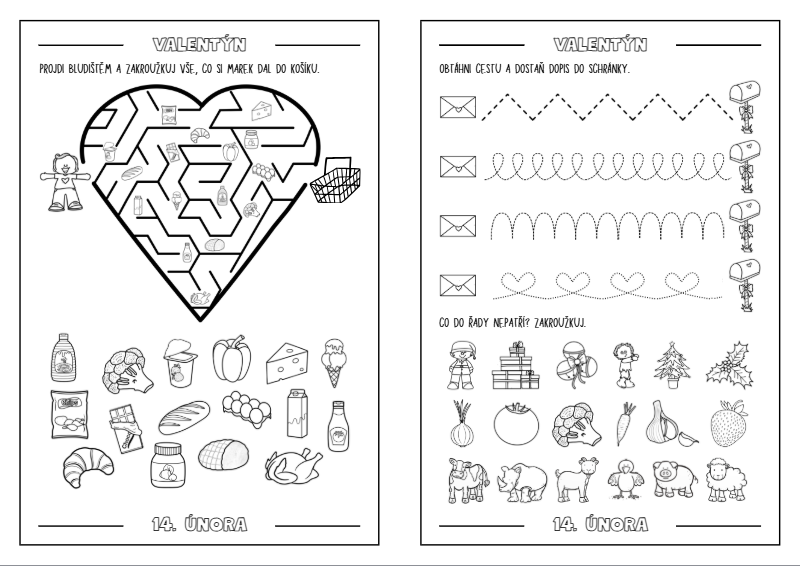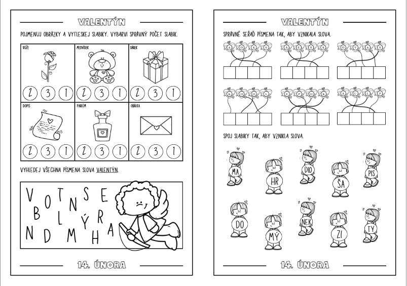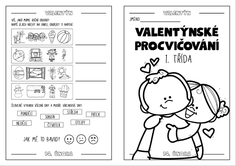 Pracovní listy jsou zpracovány ve formě černobílé knížečky určené pro žáky prvních tříd. Obsahují úkoly s VALENTÝNSKOU tématikou, které propojují zábavu s procvičováním učiva z českého jazyka, matematikya prvouky.