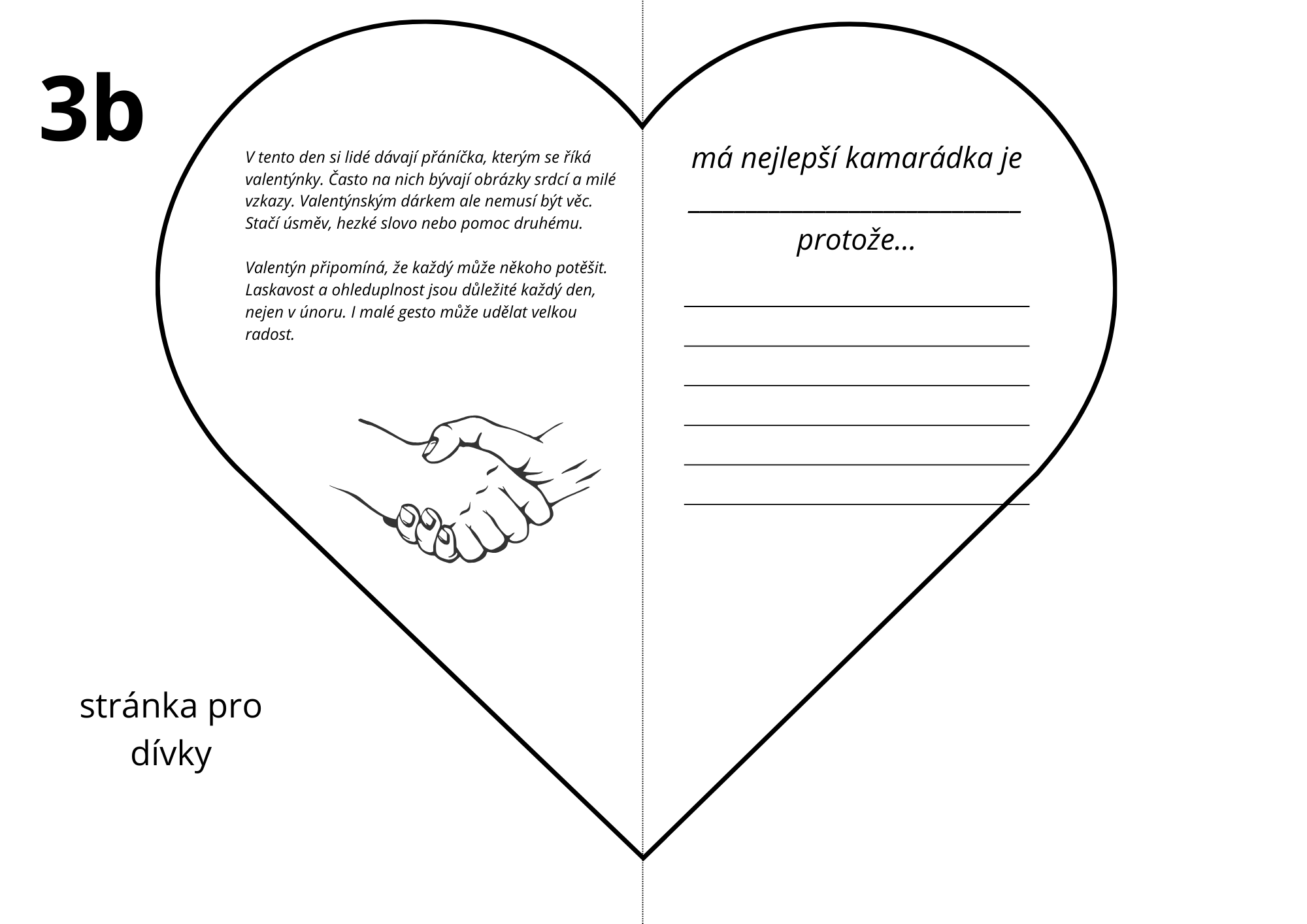 tento materiál jsem vytvořila s myšlenkou na propojení tvořivé činnosti, práce s emocemi a rozvoje jemné motoriky u dětí mladšího školního věku. Tematicky je zaměřený na svátek Valentýna, ale svým obsahem přesahuje rámec jednoho dne a lze jej využít kdykoliv v průběhu roku při práci s tématy přátelství, vztahů, laskavosti a vzájemného respektu.