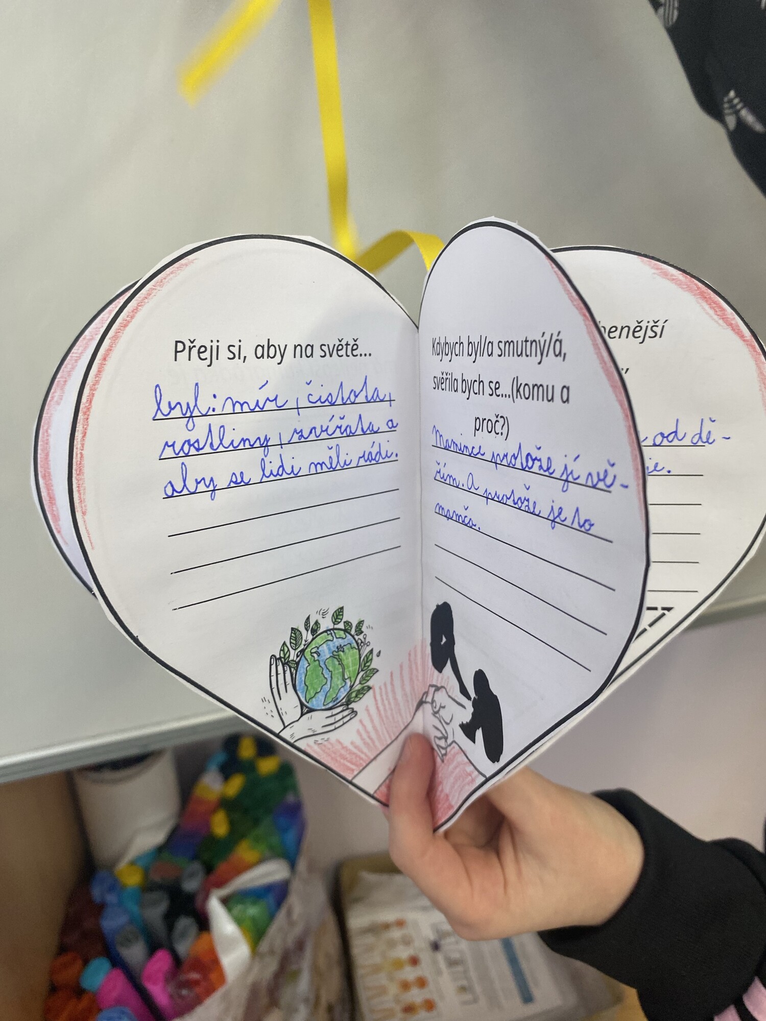 Cílem materiálu není pouze vytvoření hezkého výrobku, ale především otevření prostoru pro rozhovor, sdílení a posilování pozitivního klimatu ve třídě. Stejně jako u materiálu s okénky jsem se snažila vytvořit pomůcku, která není „povinným pracovním listem“, ale smysluplnou a příjemnou součástí výuky.