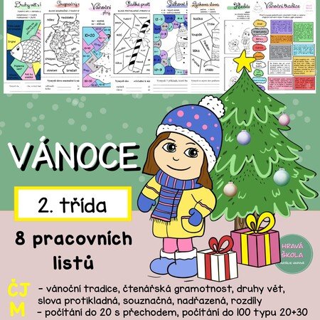 🎄🎅🏼MATERIÁL obsahuje 8 PL s TÉMATIKOU VÁNOC do ČJ a M pro 2.TŘÍDU ❄️
