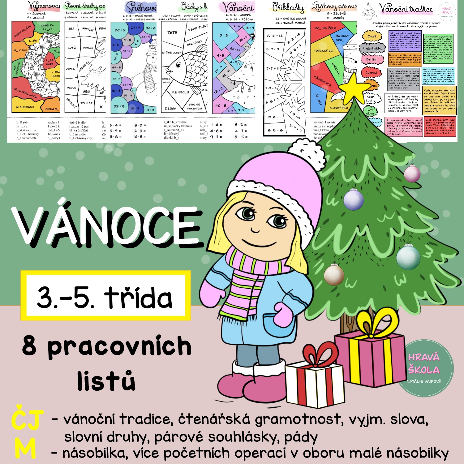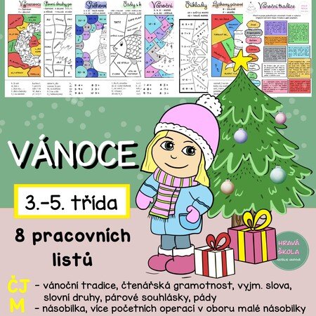 🎄🎅🏼MATERIÁL obsahuje 8 PL s TEMATIKOU VÁNOC do ČJ a M pro 3.-5. TŘÍDU ❄️