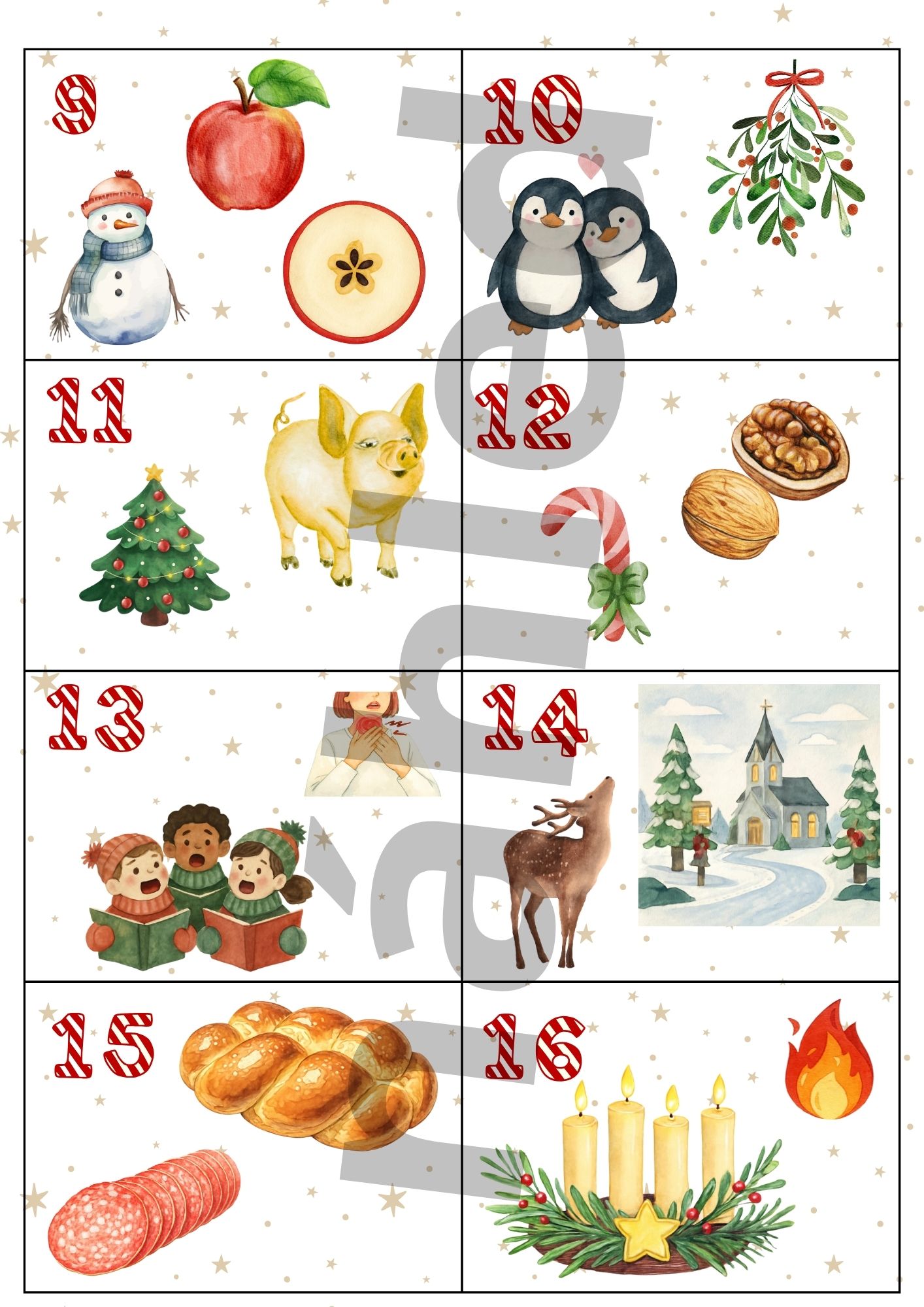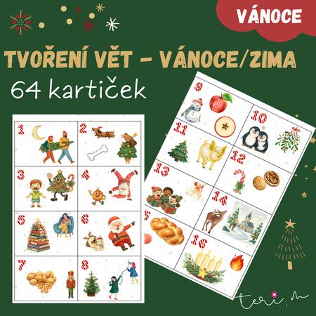 Soubor obsahuje 64 tematických kartiček s vánočními/zimními motivy.
