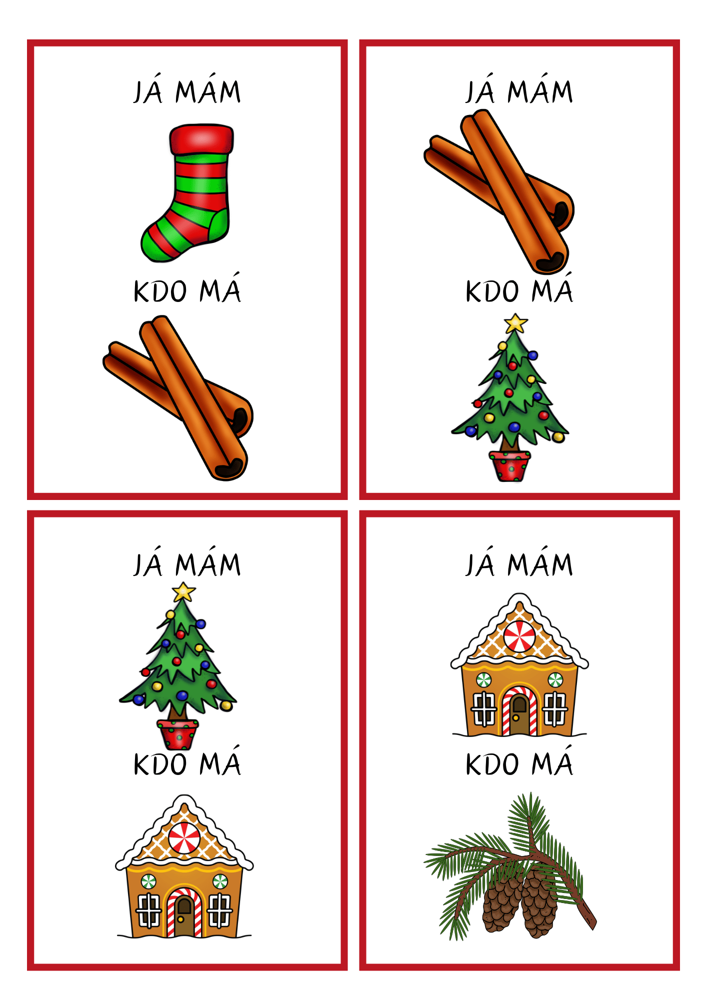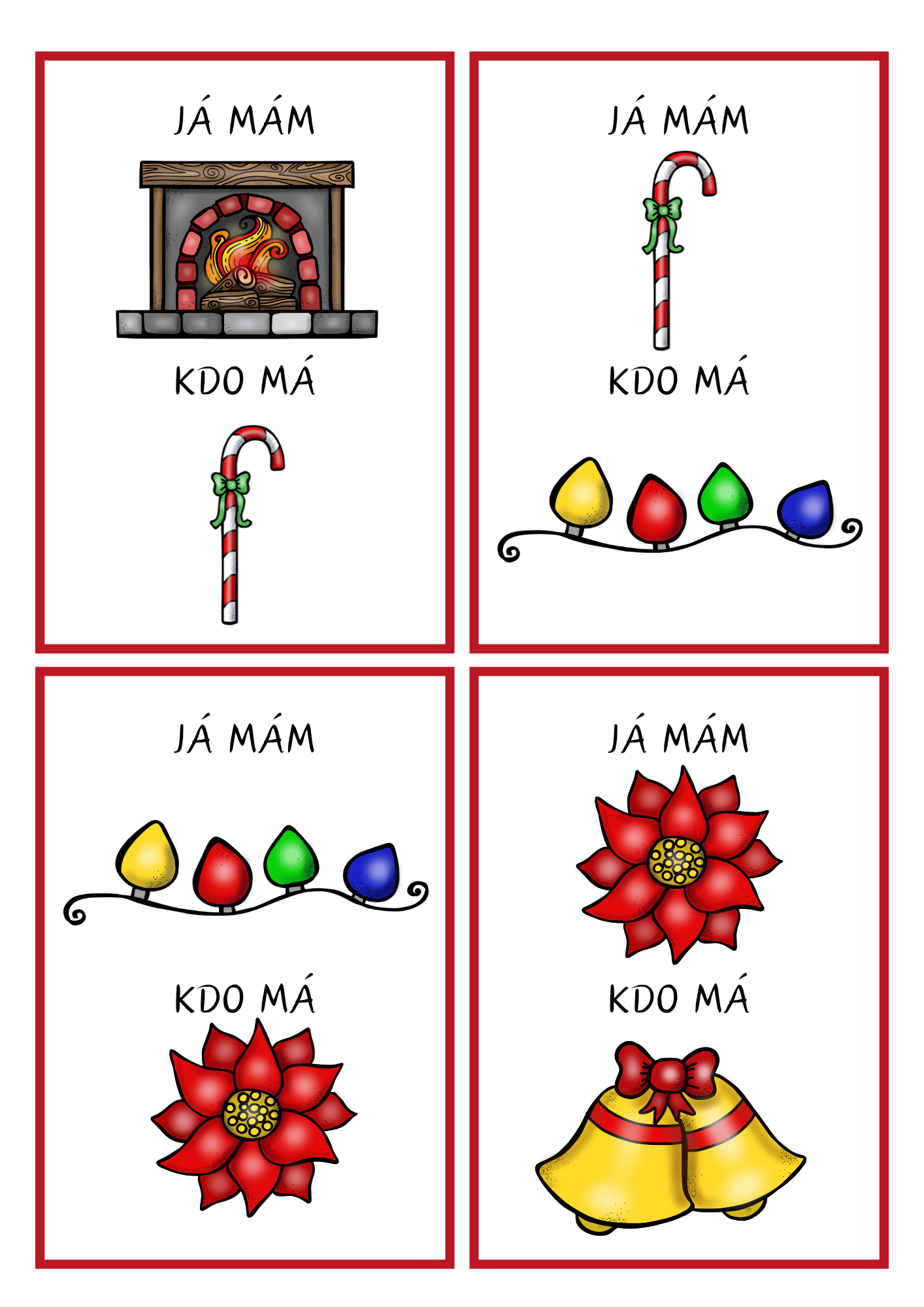 Hravá vánoční karetní hra, která rozvíjí pozornost, zrakové vnímání, čtení a logické myšlení.