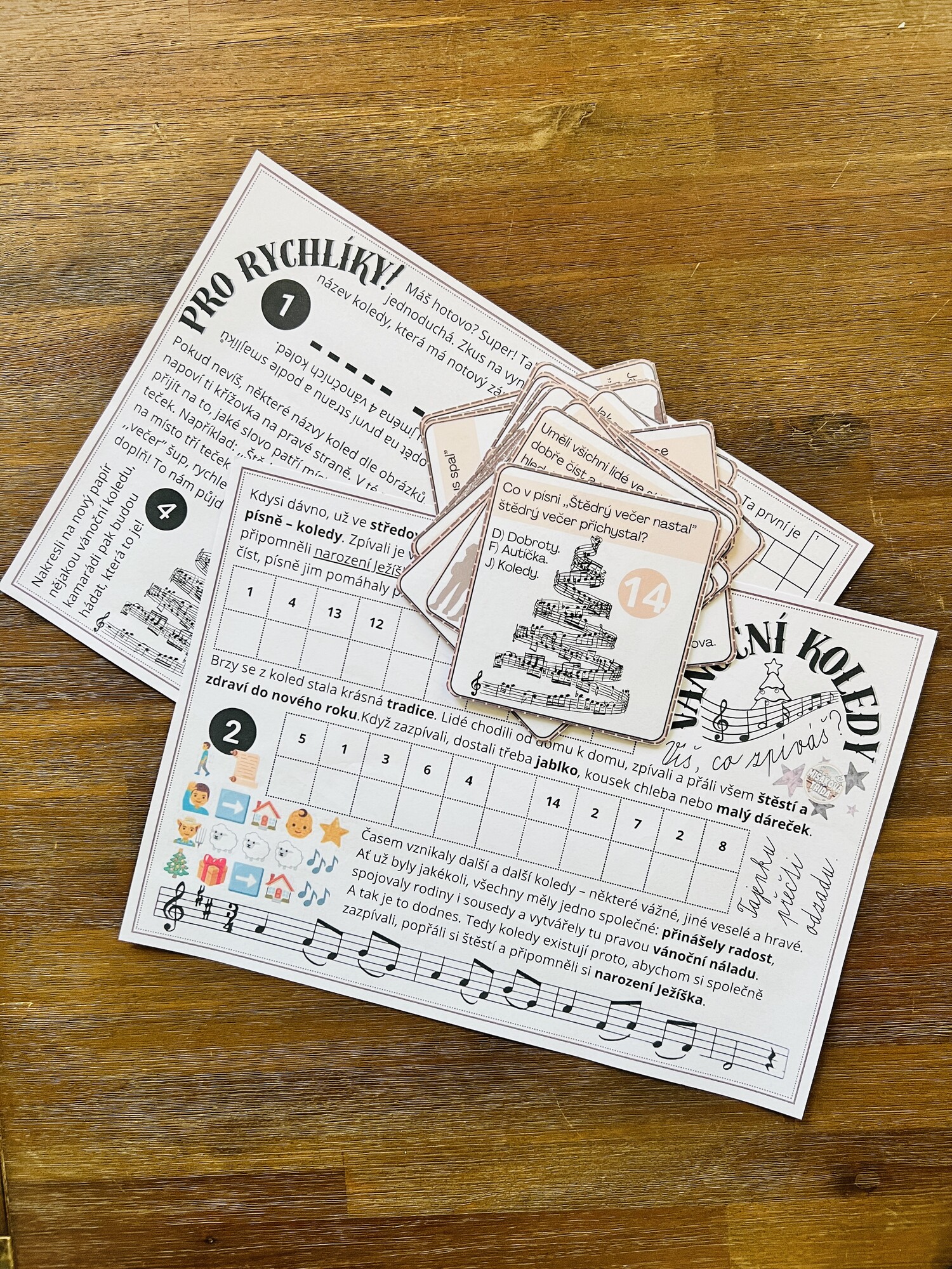 Stačí vytisknout. A pak už jen sledovat, jak se učí… a luští. 🎶🎄
