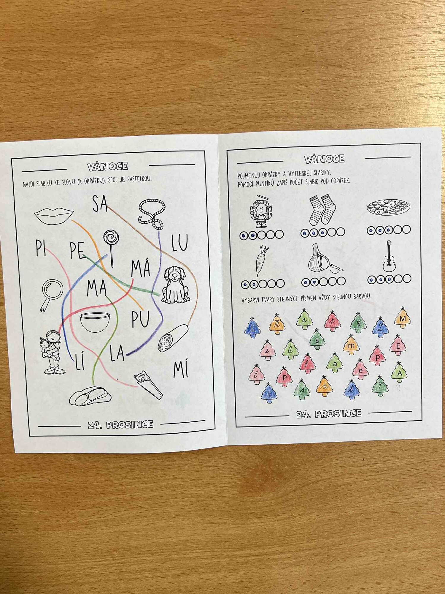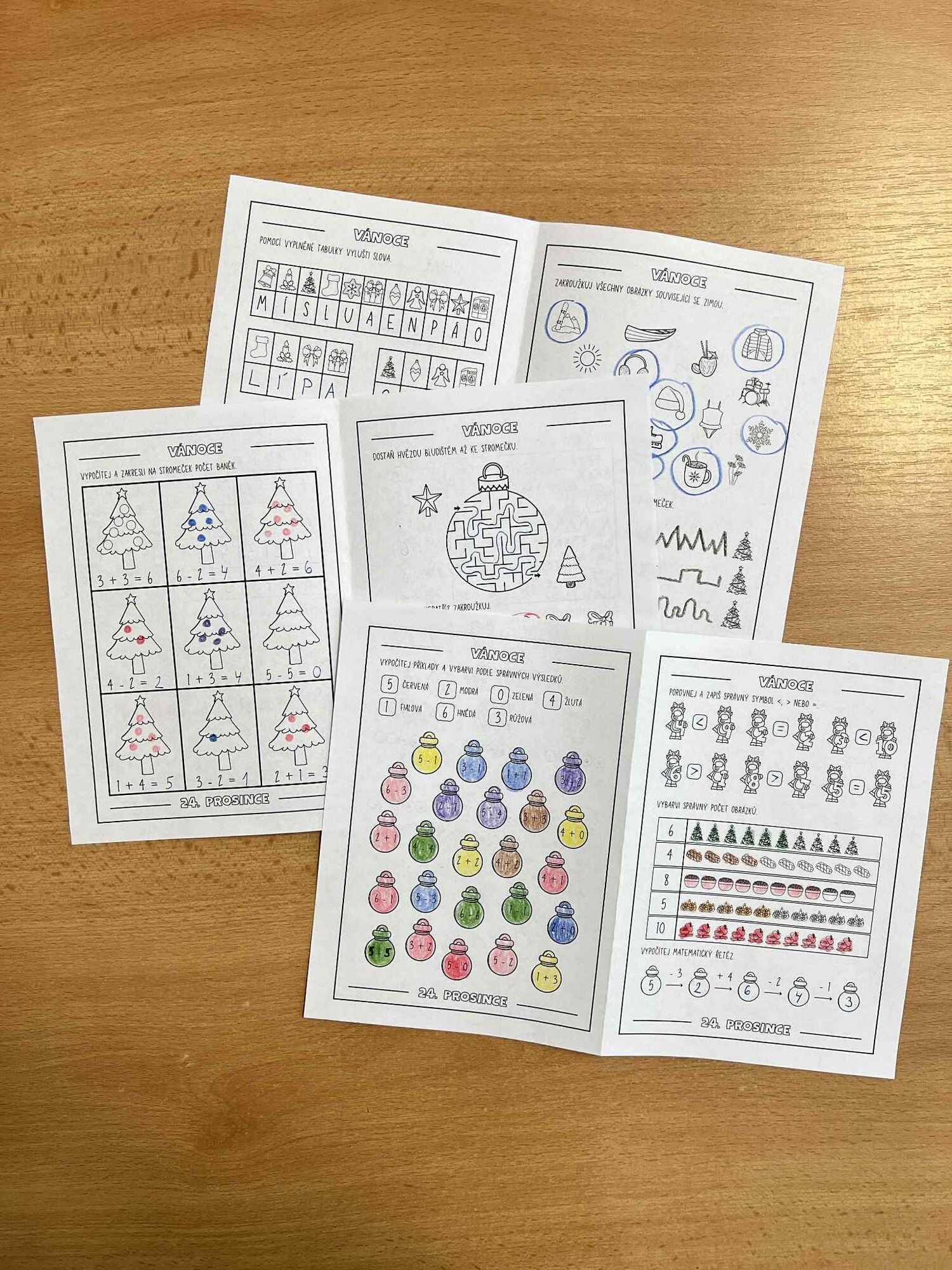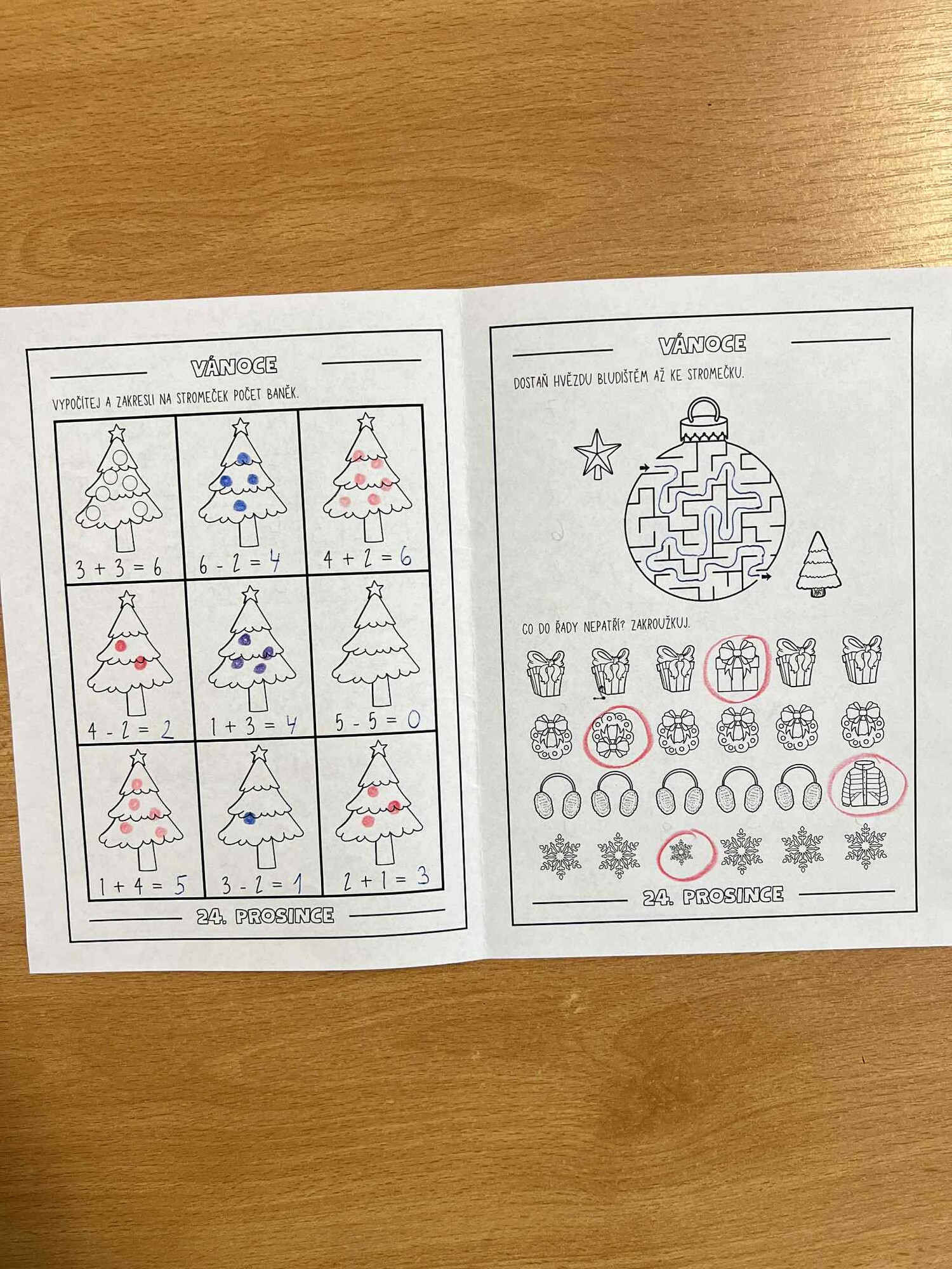 Pracovní listy jsou zpracovány ve formě černobílé knížečky určené pro žáky prvních tříd. Obsahují úkoly s vánoční tématikou, které propojují zábavu s procvičováním učiva z českého jazyka a matematiky.