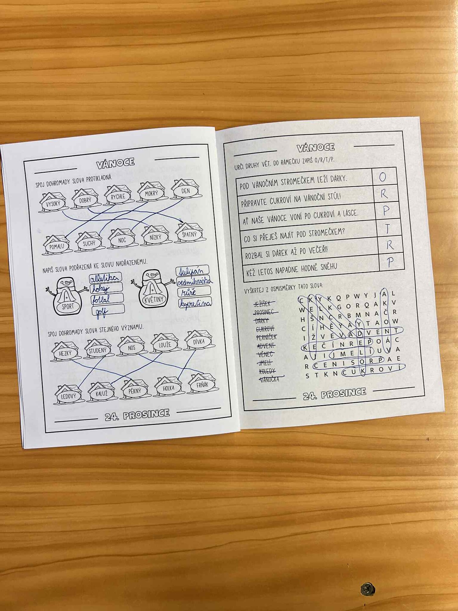 Nechybí ani bludiště, osmisměrka a kroužkování obrázků souvisejících se zimou.