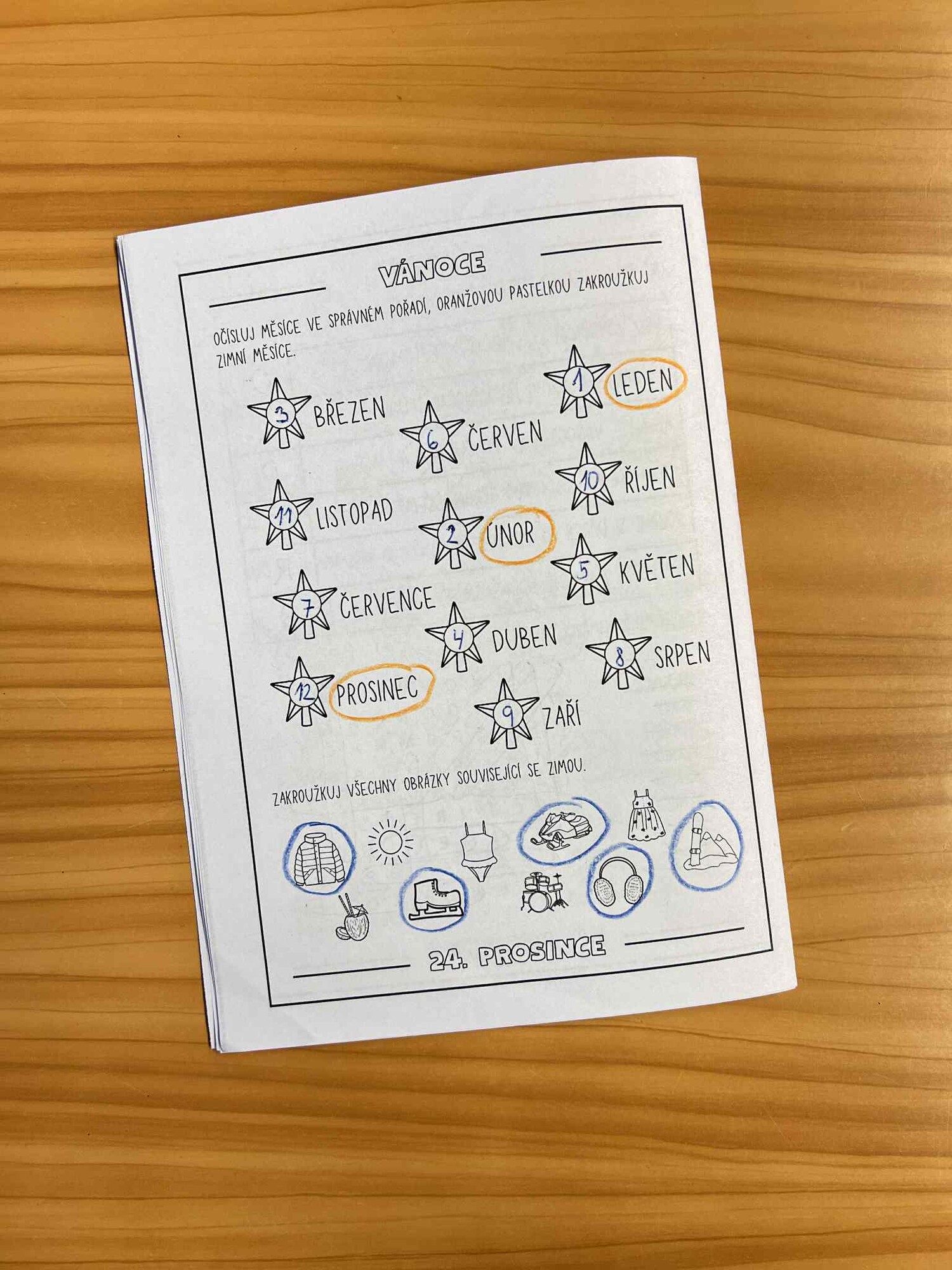 Část prvouky se věnuje očíslování měsíců ve správném pořadí a označení zimních měsíců.