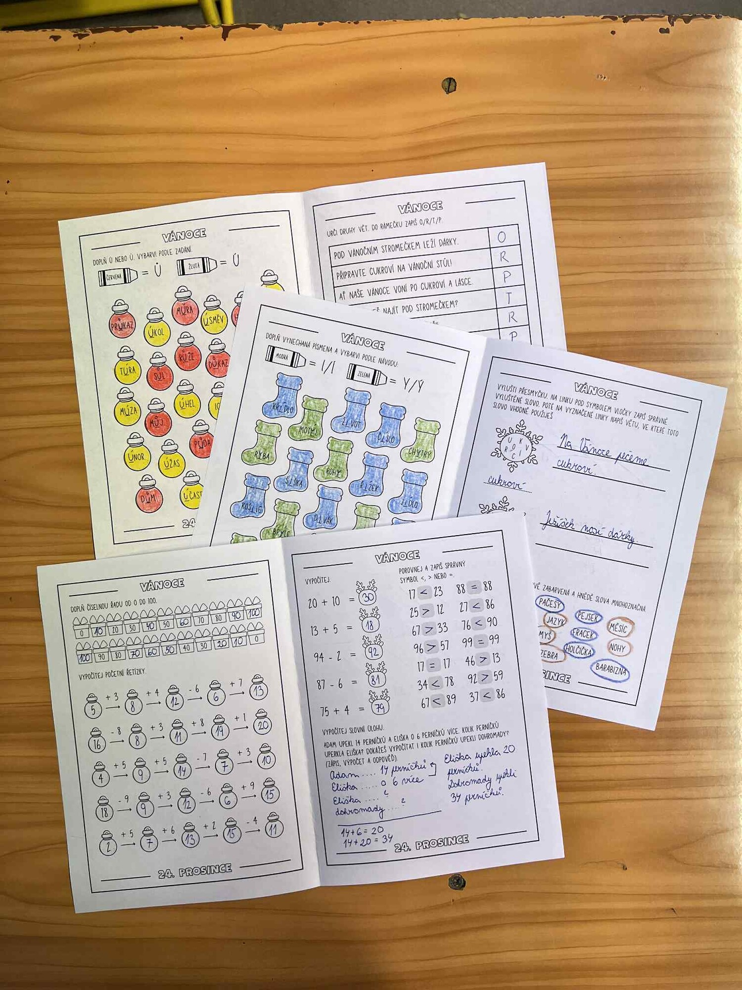 Pracovní listy jsou zpracovány ve formě černobílé knížečky určené pro žáky druhých tříd. Obsahují úkoly s vánoční tématikou, které propojují zábavu s procvičováním učiva z českého jazyka, matematiky a prvouky.