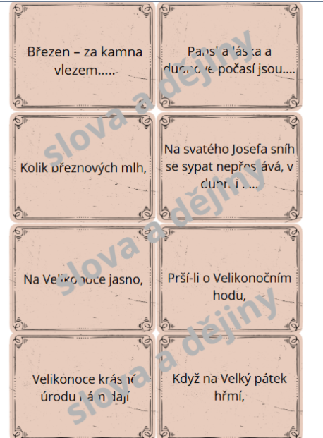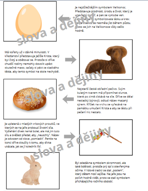 - Hádanky a definice: Vysvětlení symbolů (beránek, pomlázka, vejce).