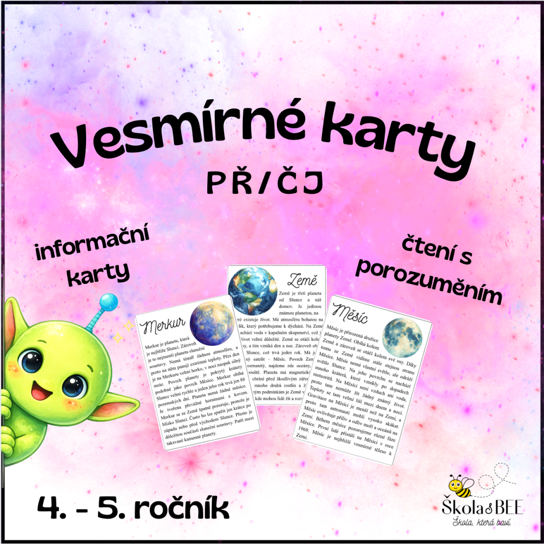 🪐 VESMÍR – ČTECÍ KARTY (PŘÍRODOVĚDA & ČESKÝ JAZYK)