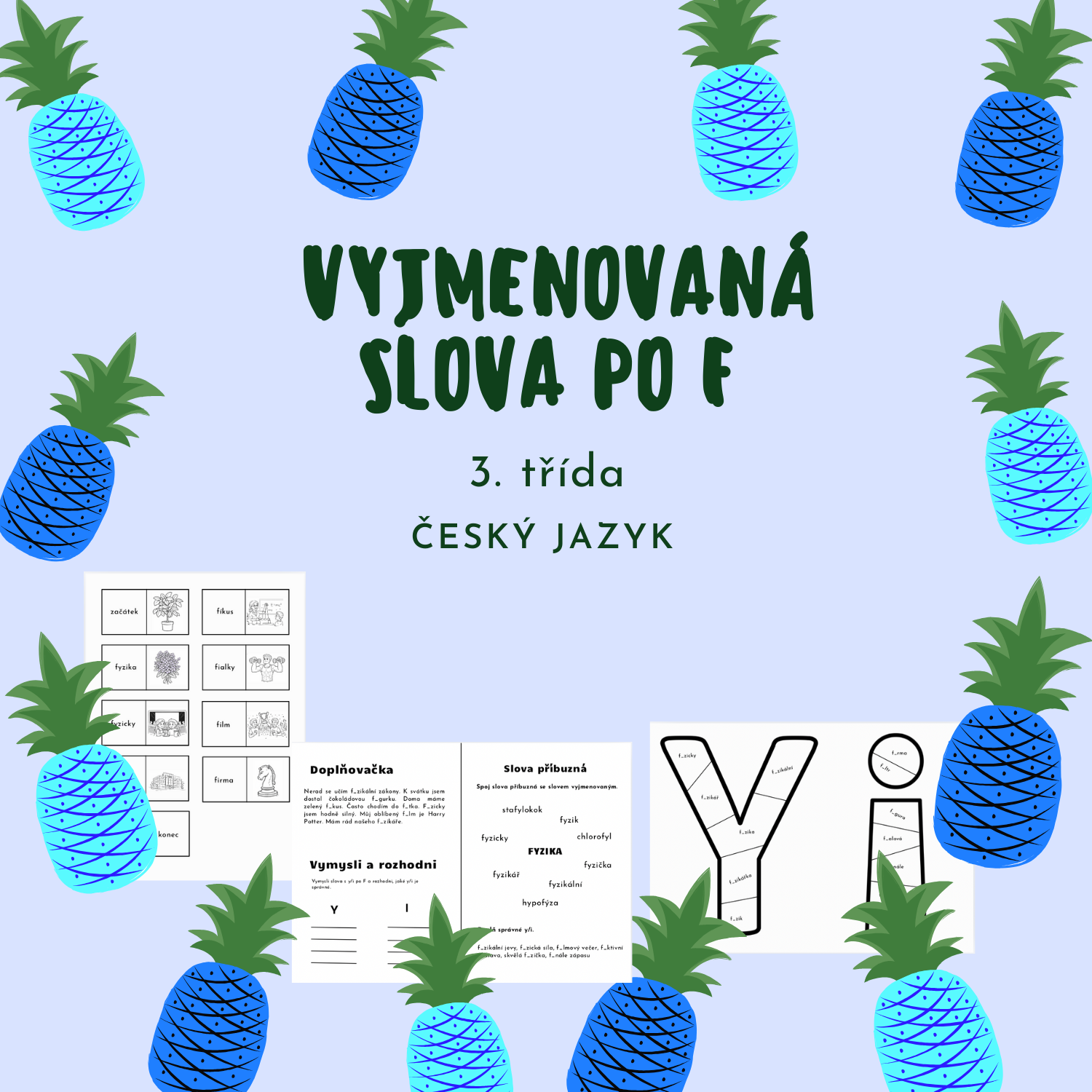 Materiál obsahuje doplňovací cvičení a rozhodovačku. Skládačku y a i s vyjmenovanými a slovy, které nejsou vyjmenované po F a pracovní list na slova příbuzná k zapamatování i procvičení.
