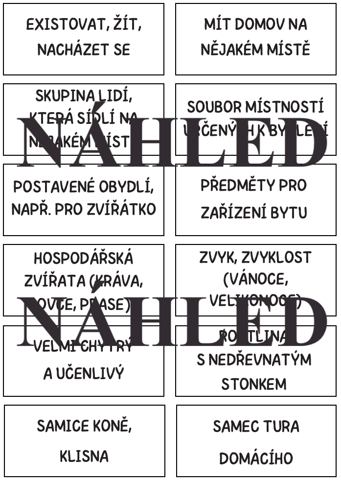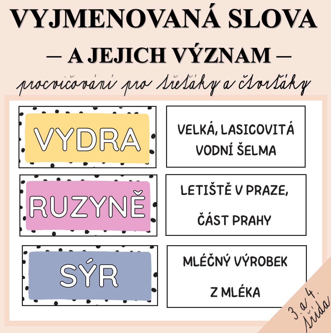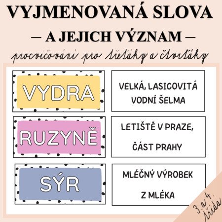 SOUBOR URČENÝ K PROCVIČOVÁNÍ VÝZNAMU VŠECH VYJMENOVANÝCH SLOV.