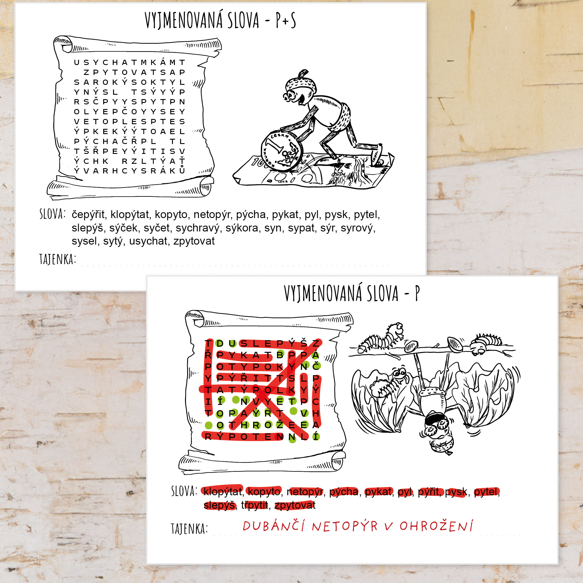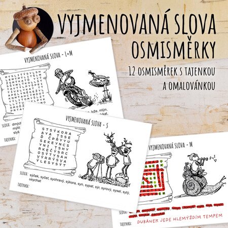 Žáci si tak přirozeně upevňují jejich pravopis, lépe si zapamatují tvary i významy slov a zároveň trénují soustředění a pozornost. U každé osmisměrky je také vtipná dubánčí omalovánka, kterou si mohou děti po vyřešení vybarvit. Pokud správně vyškrtají všechna vyjmenovaná slova, objeví se jim tajenka z nevyškrtaných písmen – ta nejen popisuje obrázek, ale ukrývá v sobě další vyjmenovaná slova.