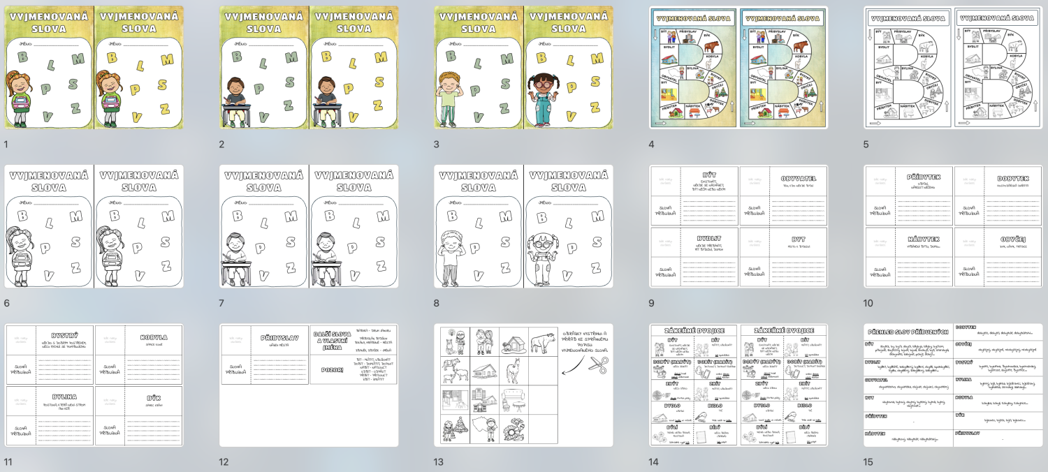 Vše je přizpůsobené na velikost sešitu A5. Je potřeba zakoupit sešit s 60 listy. Díky černobílé verzi děti mohou brát materiál jako omalovánky, což také vede k lepšímu zapamatování si slov.
