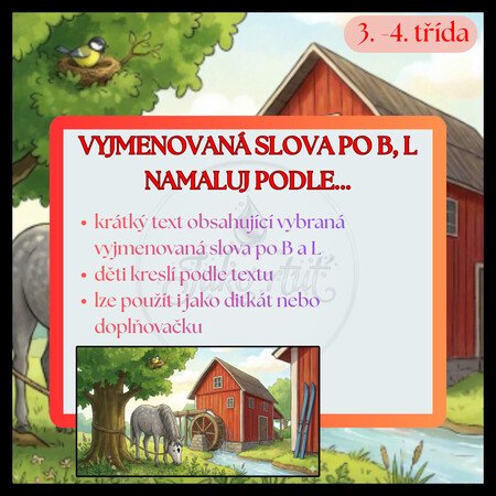 - krátký text obsahující vybraná vyjmenovaná slova po B a L