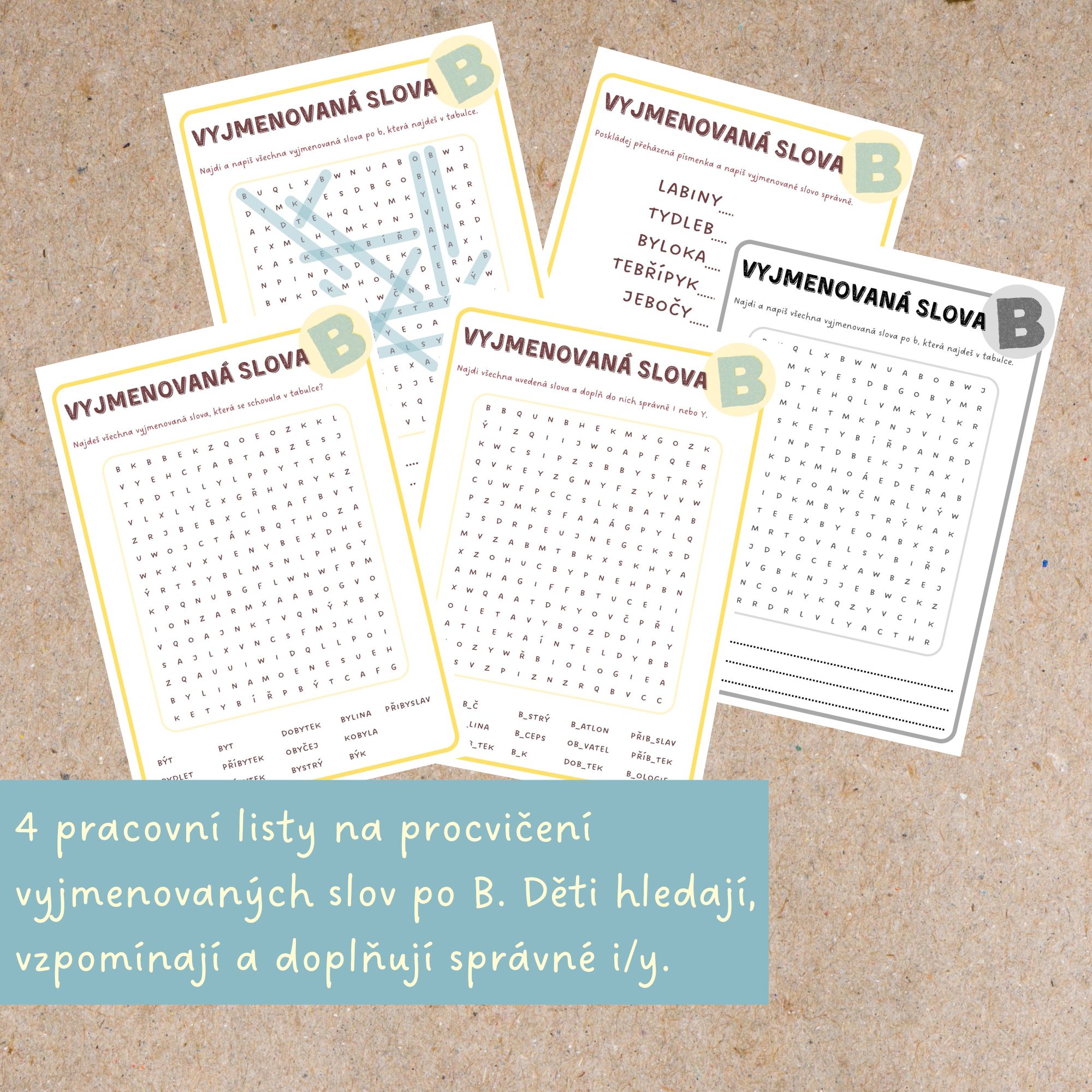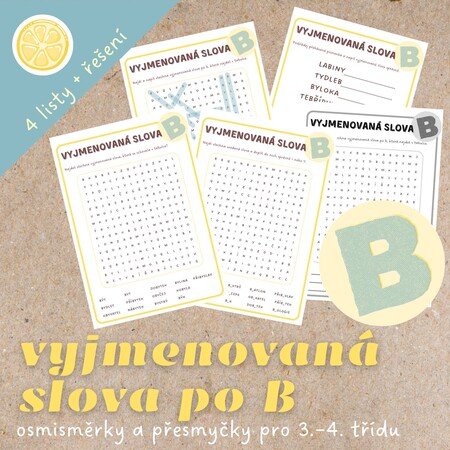 🅱️Sada osmisměrek a přesmyček, která dětem pomůže procvičovat vyjmenovaná slova po B zábavnou formou.