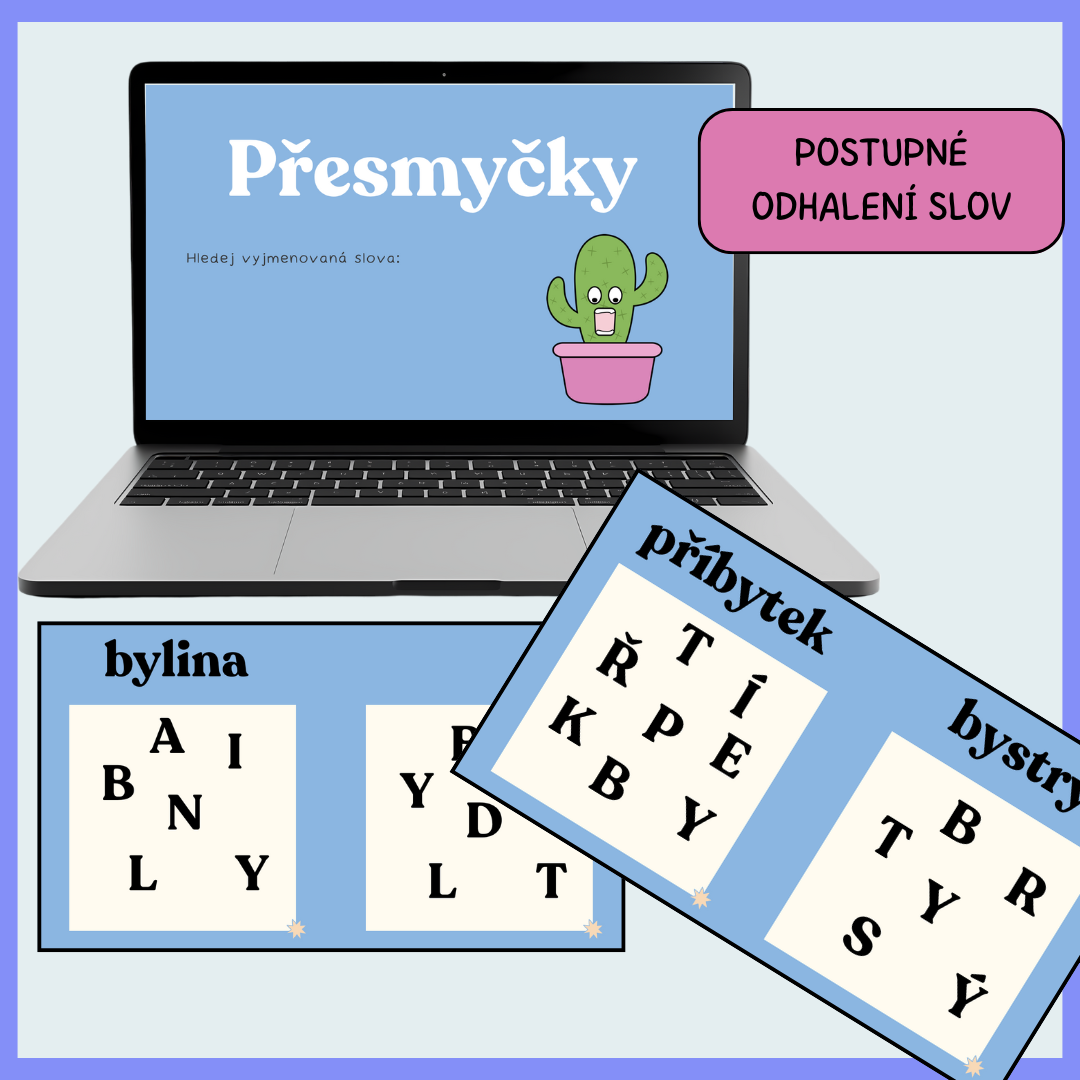 Jednotlivá slova v textu, přesmyčky... se zobrazují vždy postupně po dalším kliknutí.