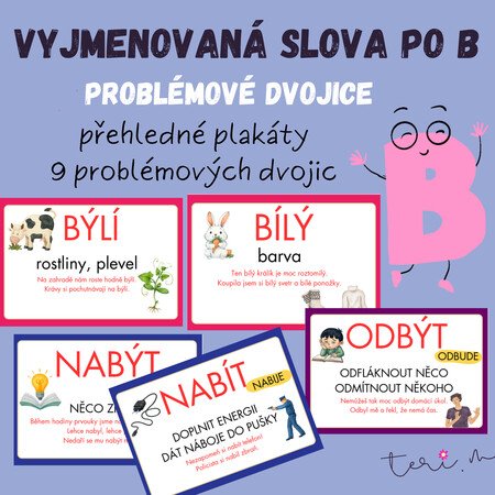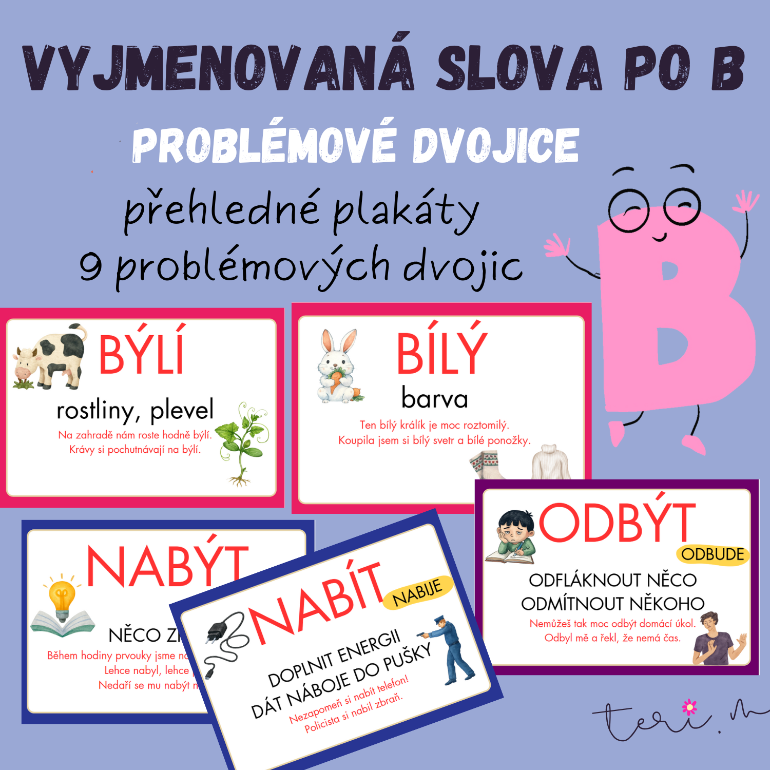 Tento přehledný a vizuálně poutavý materiál obsahuje 9 nejčastějších problémových dvojic slov, která si žáci často pletou při práci s vyjmenovanými slovy.