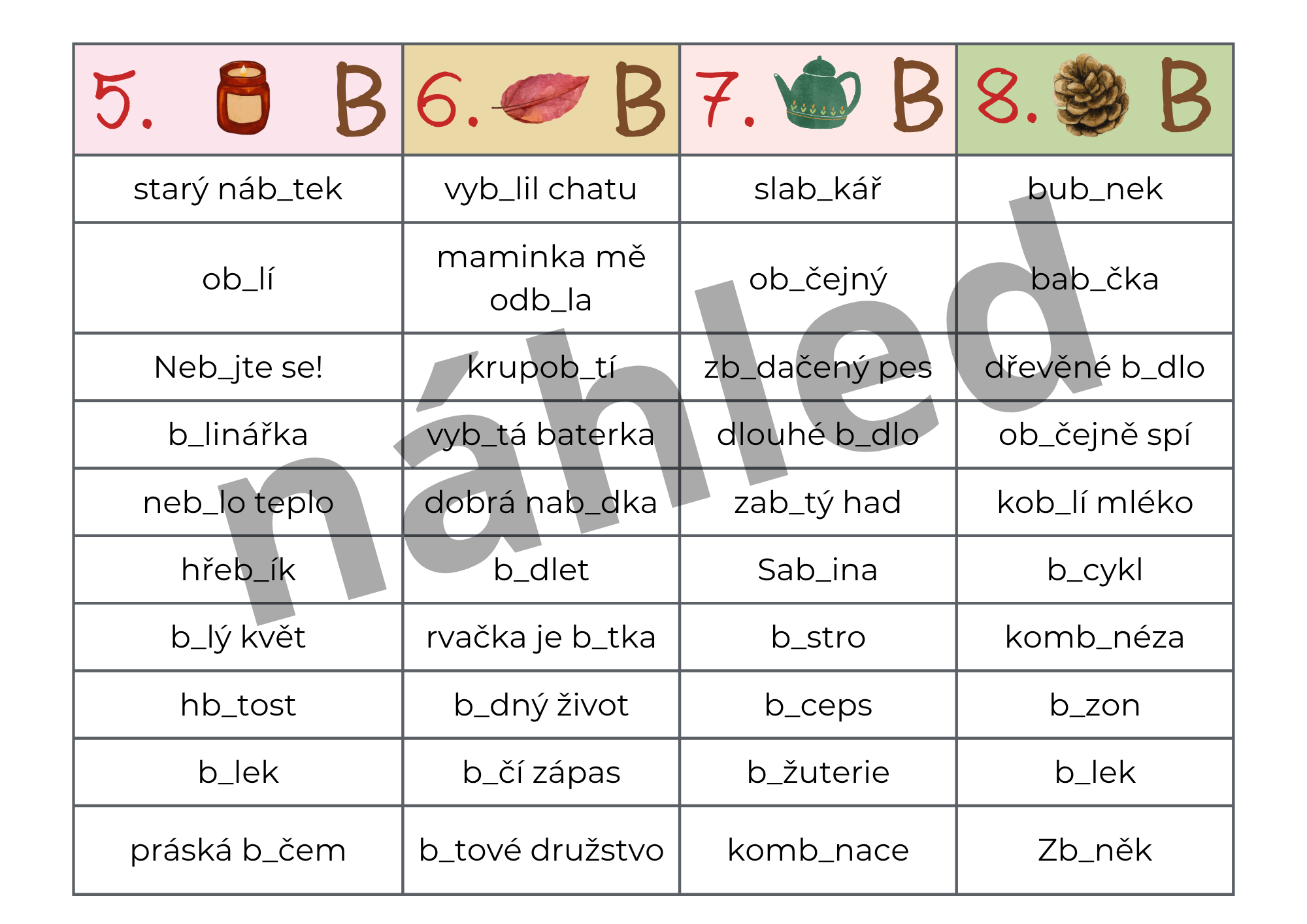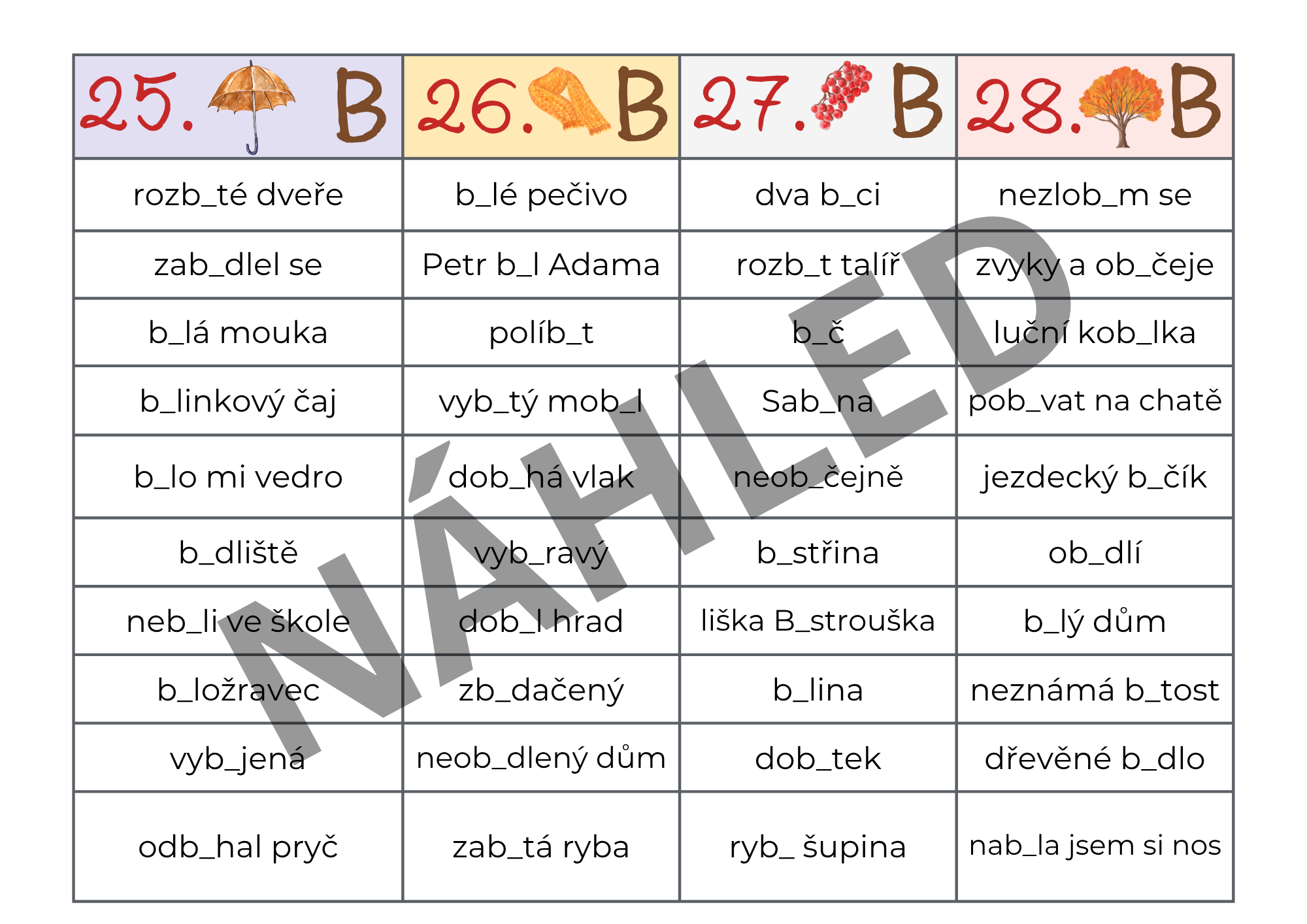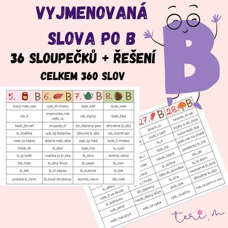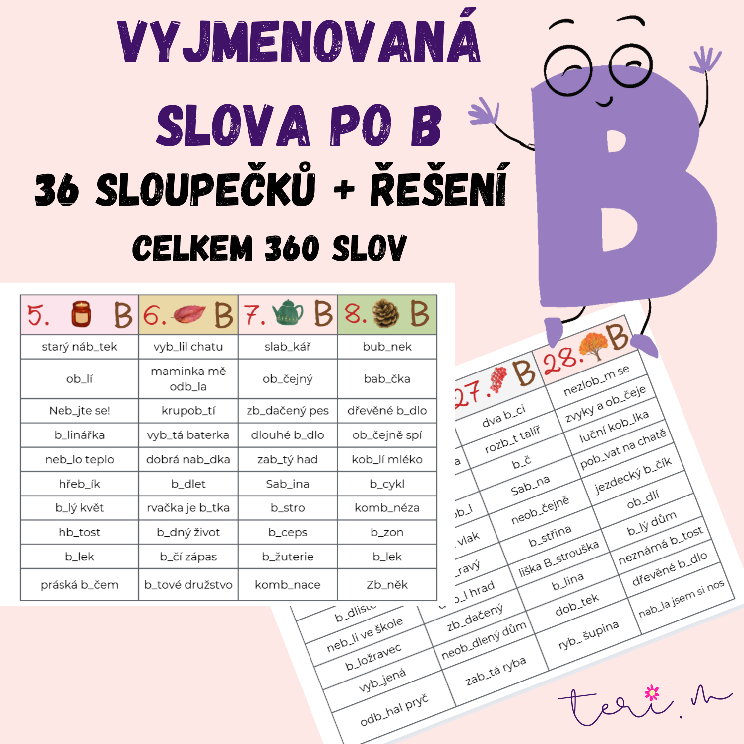 VYJMENOVANÁ SLOVA PO B - sloupečky