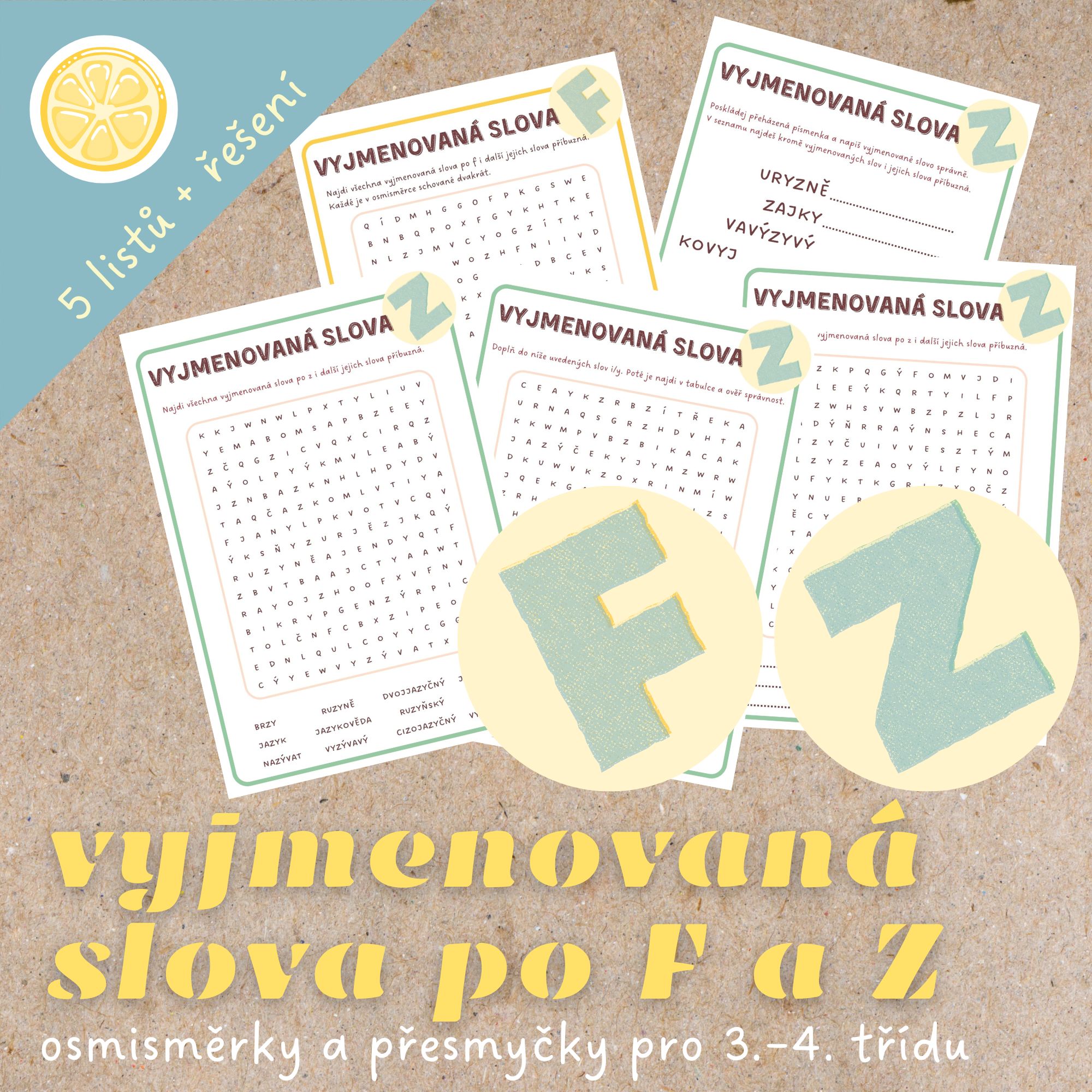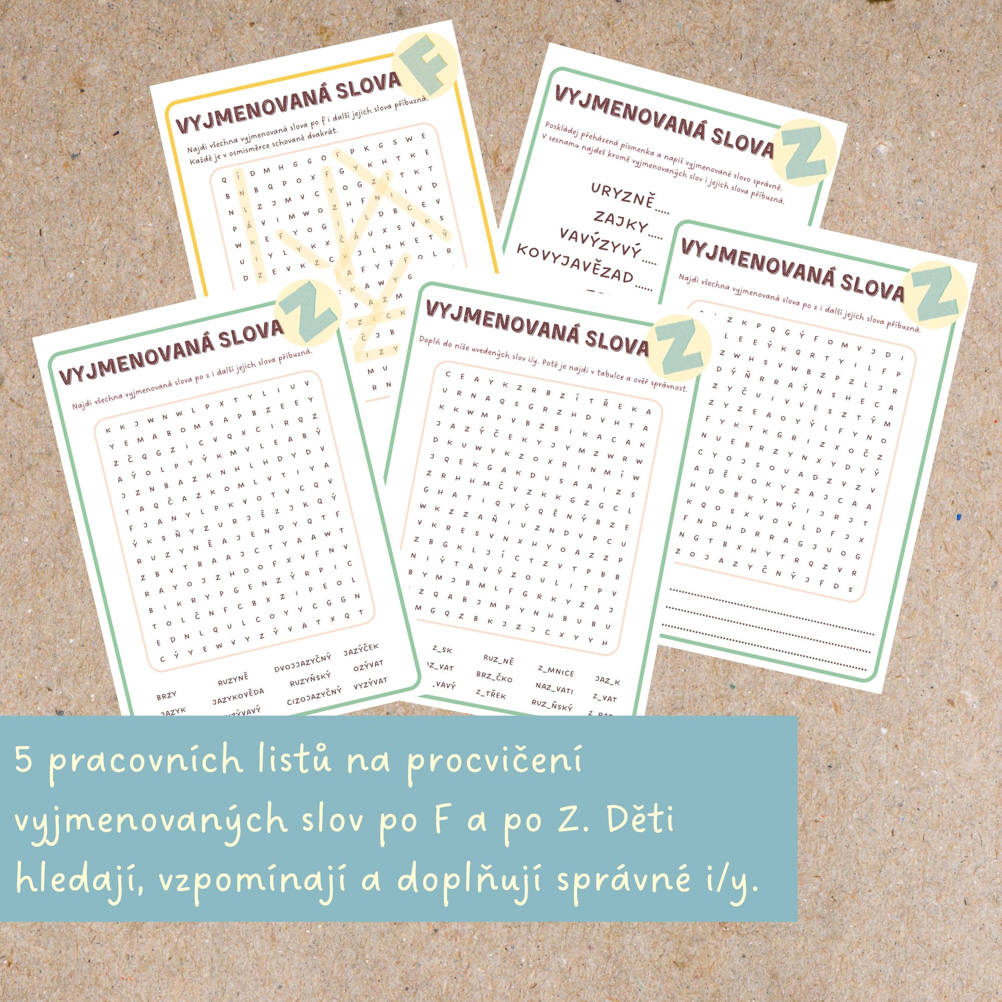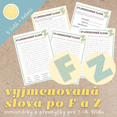 🟢Sada osmisměrek a přesmyček, která dětem pomůže procvičovat vyjmenovaná slova po F a po Z zábavnou formou.