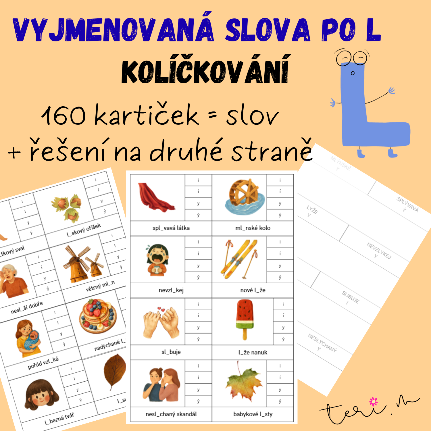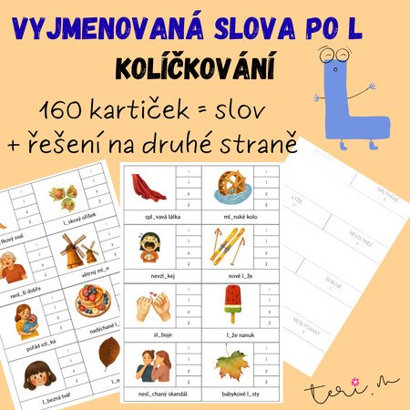 Celkem 160 kartiček se slovními spojeními k procvičení vyjmenovaných slov po L .