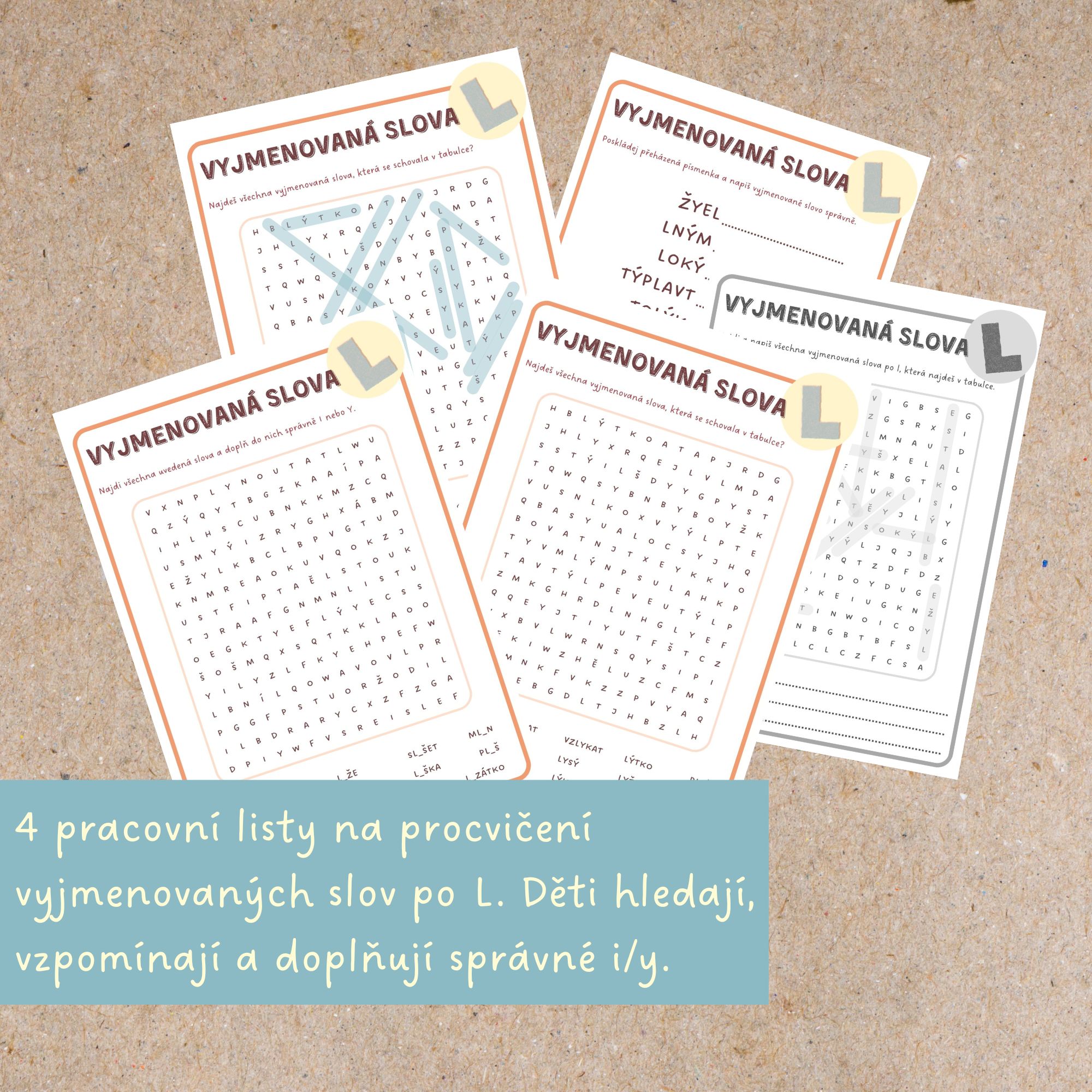 🟡Sada osmisměrek a přesmyček, která dětem pomůže procvičovat vyjmenovaná slova po L zábavnou formou.