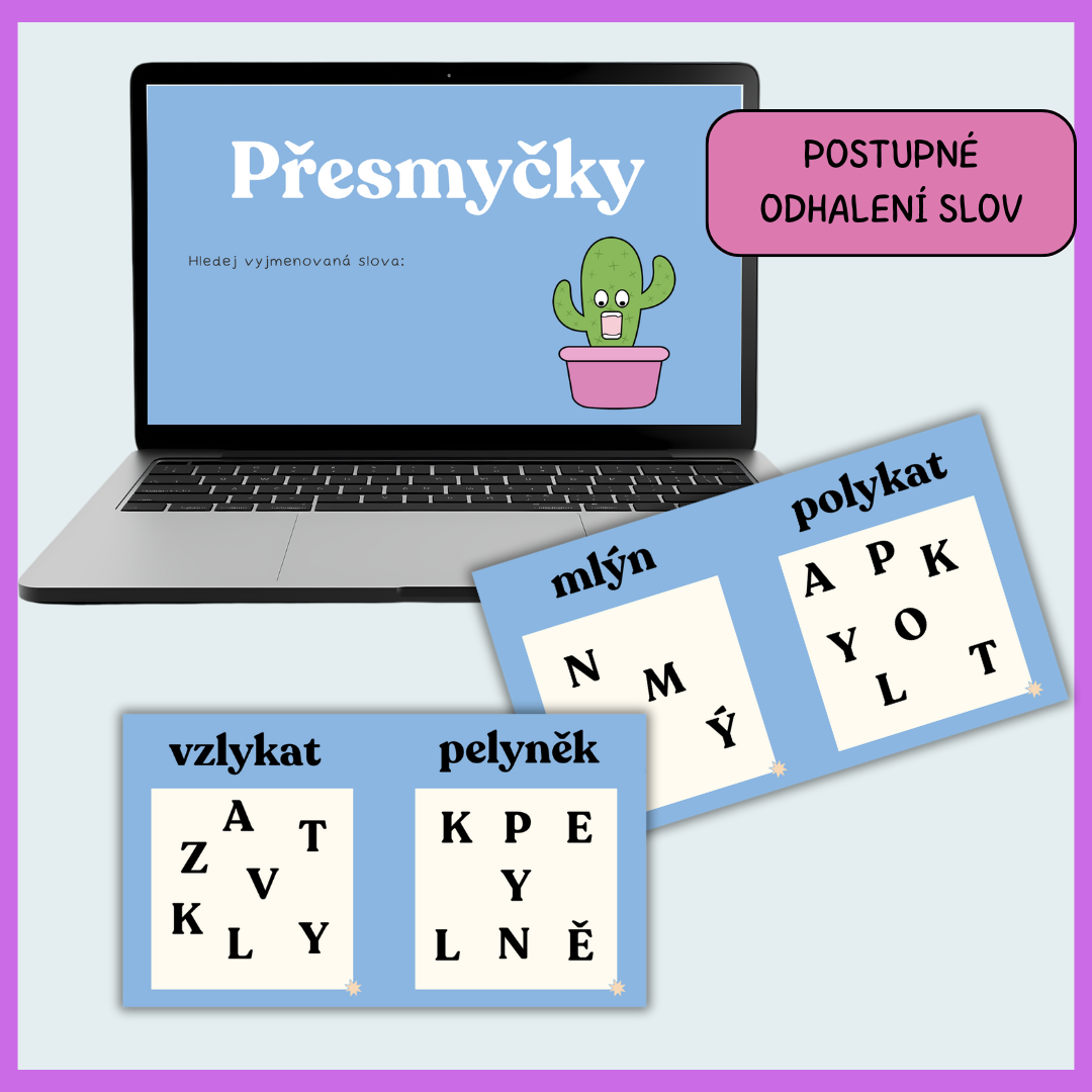 Jednotlivá slova v textu, přesmyčky... se zobrazují vždy postupně po dalším kliknutí.