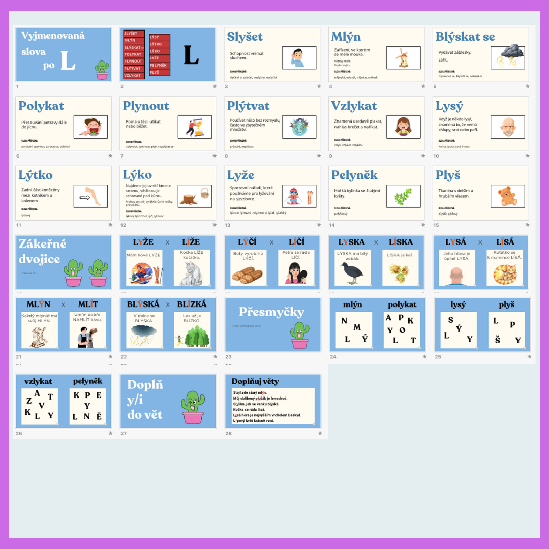 Prezentace slouží k výuce vyjmenovaných slov po L.
