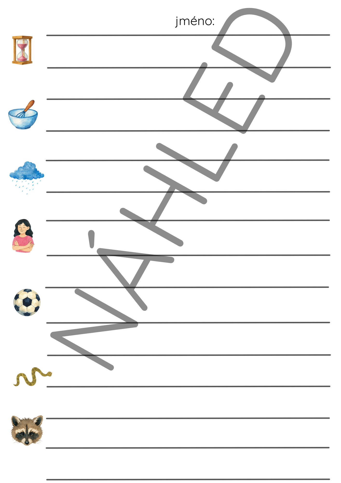 - pokud chcete věty rozmístit nebo řadit v jiném pořadí, můžete využít prázdný záznamový arch pro vlastní úpravy a ikonky k jednotlivým větám – děti si vystřihnou ikonku a nalepí ji k větě, kterou opisují
