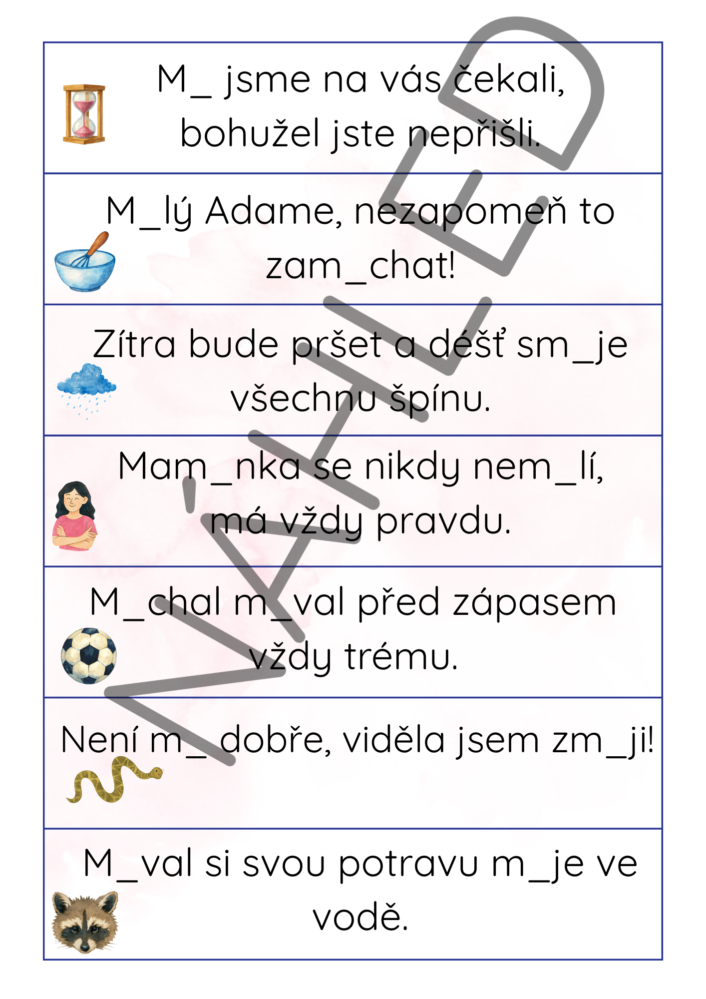 Běhací diktát k vyjmenovaným slovům po M.