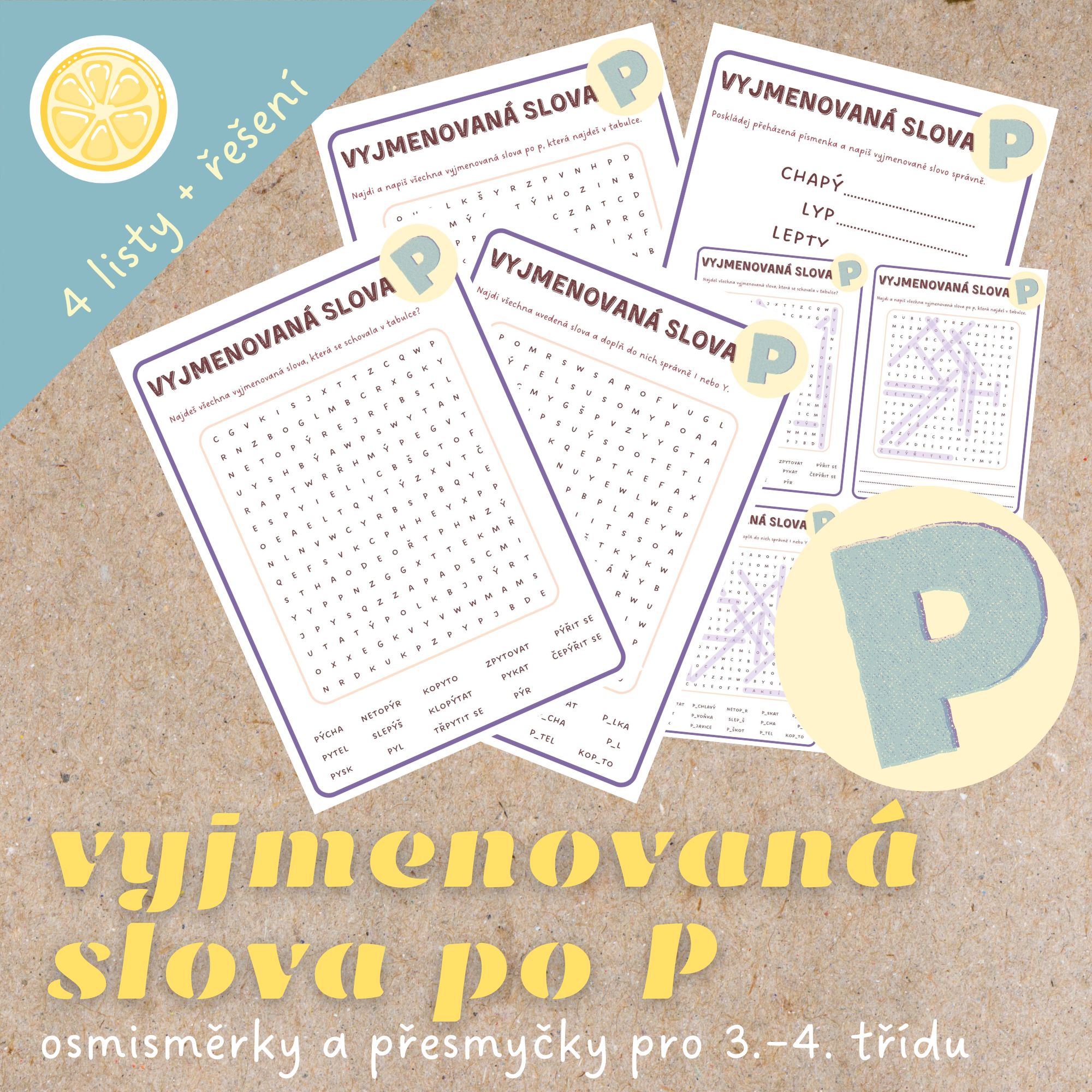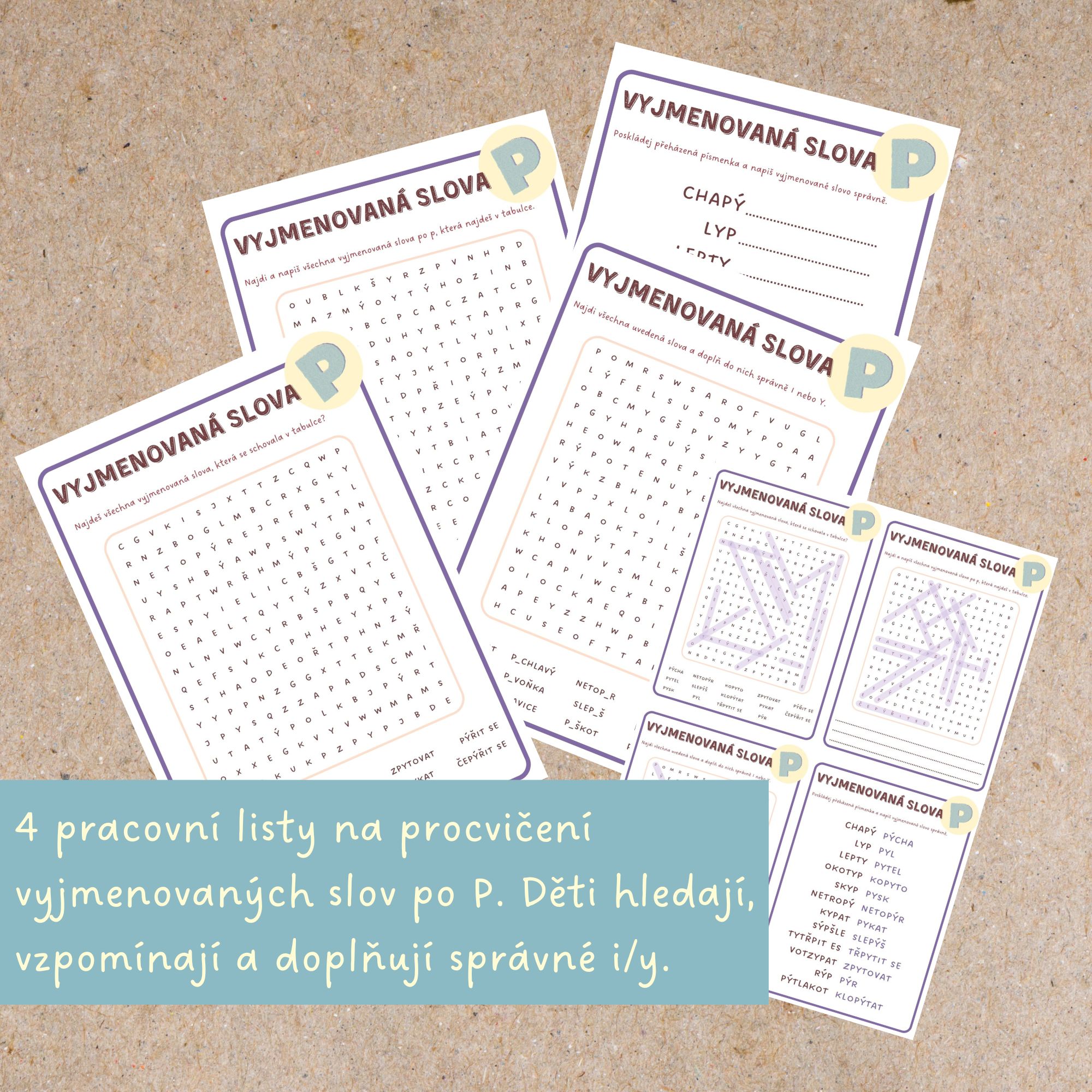 🅿️Sada osmisměrek a přesmyček, která dětem pomůže procvičovat vyjmenovaná slova po P zábavnou formou.