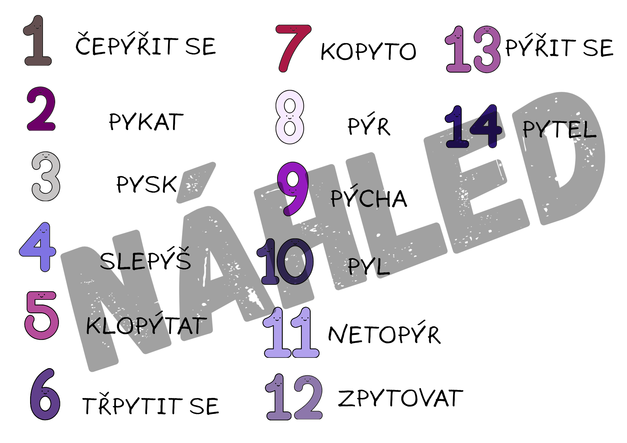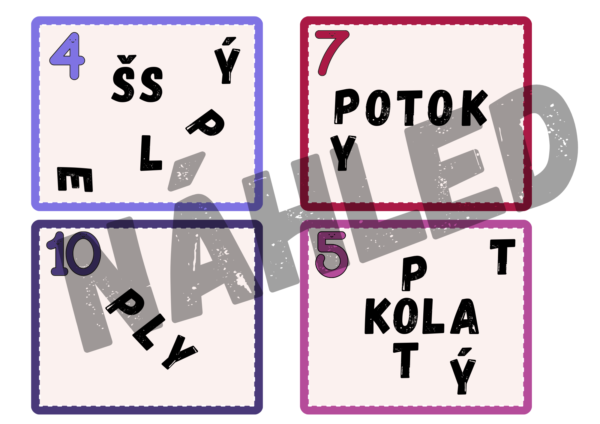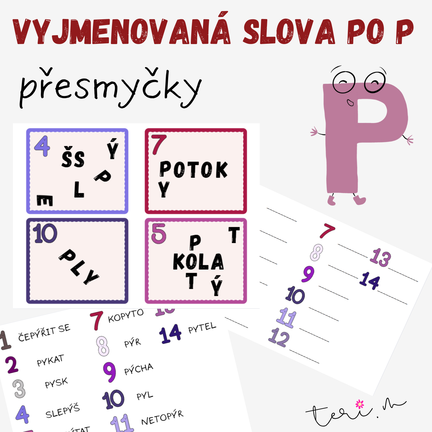 Tento soubor obsahuje 14 karet s přesmyčkami (na jedné A4 jsou 4 kartičky), které dětem pomáhají upevnit pravopis i význam vyjmenovaných slov.