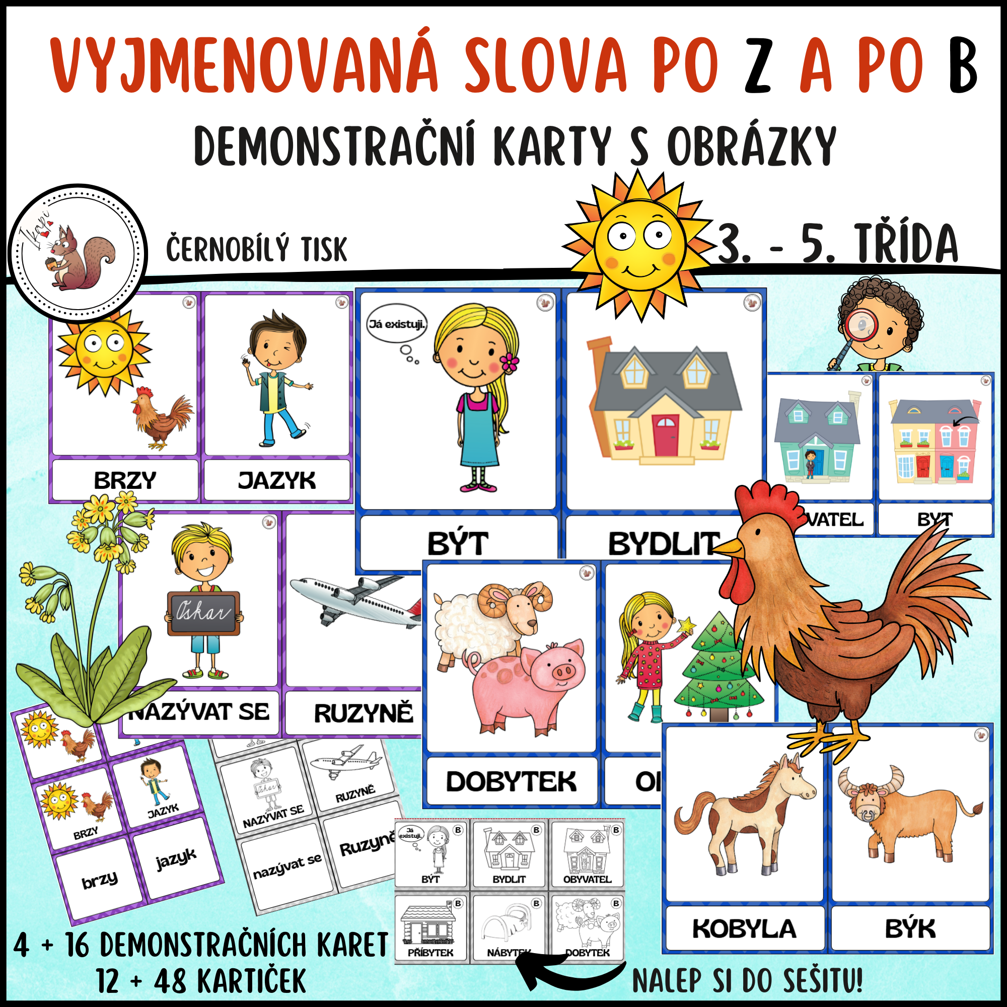 48 kartiček k vS po B, kartičky k nalepení do sešitu