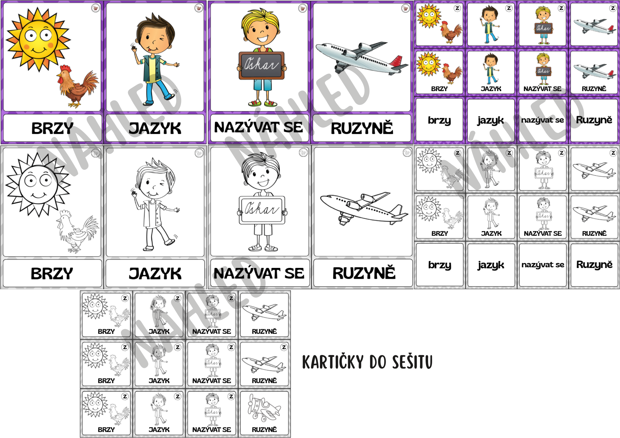 12 kartiček k VS po Z, kartičky k nalepení do sešitu