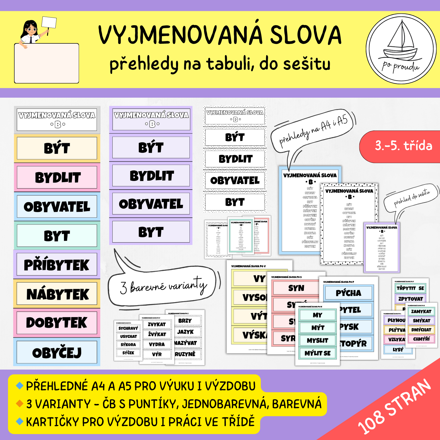 Tento materiál nabízí kompletní a ucelený přehled vyjmenovaných slov, který můžete okamžitě využít ve výuce i jako dlouhodobou vizuální oporu ve třídě.