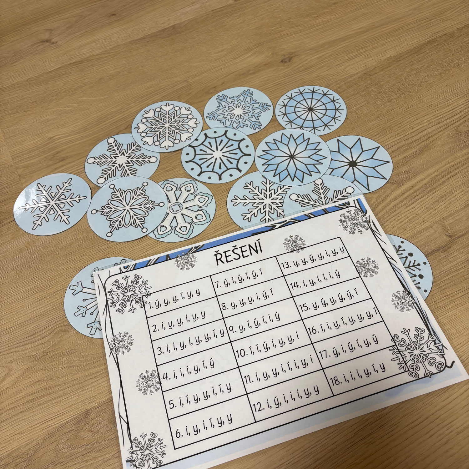 Materiál obsahuje 18 oboustranných baněk, které jsou zaměřeny na procvičování vyjmenovaných slov po B, L a M a na správné doplňování i, í, y, ý. Žáci pracují s větami, ve kterých doplňují správné písmeno do slov.